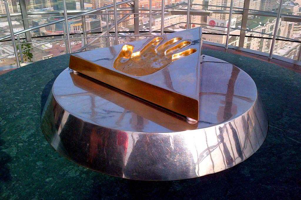 Рядом с глобусом на столе стоит композиция «Аялы алакан» с оттиском правой руки президента. Туристы верят, что если в этот отпечаток вложить ладонь, загадав при этом желание, то задуманное исполнится.
