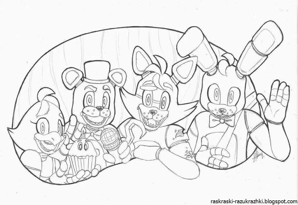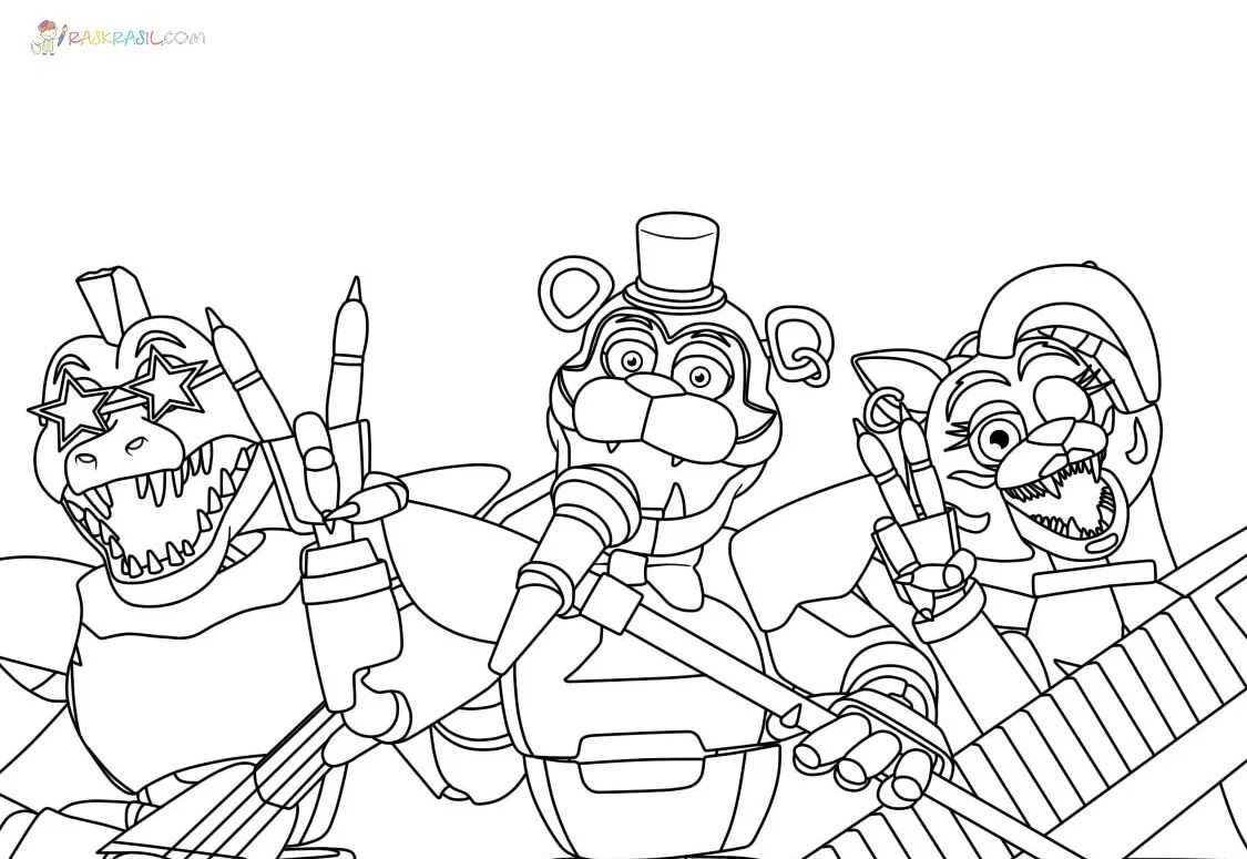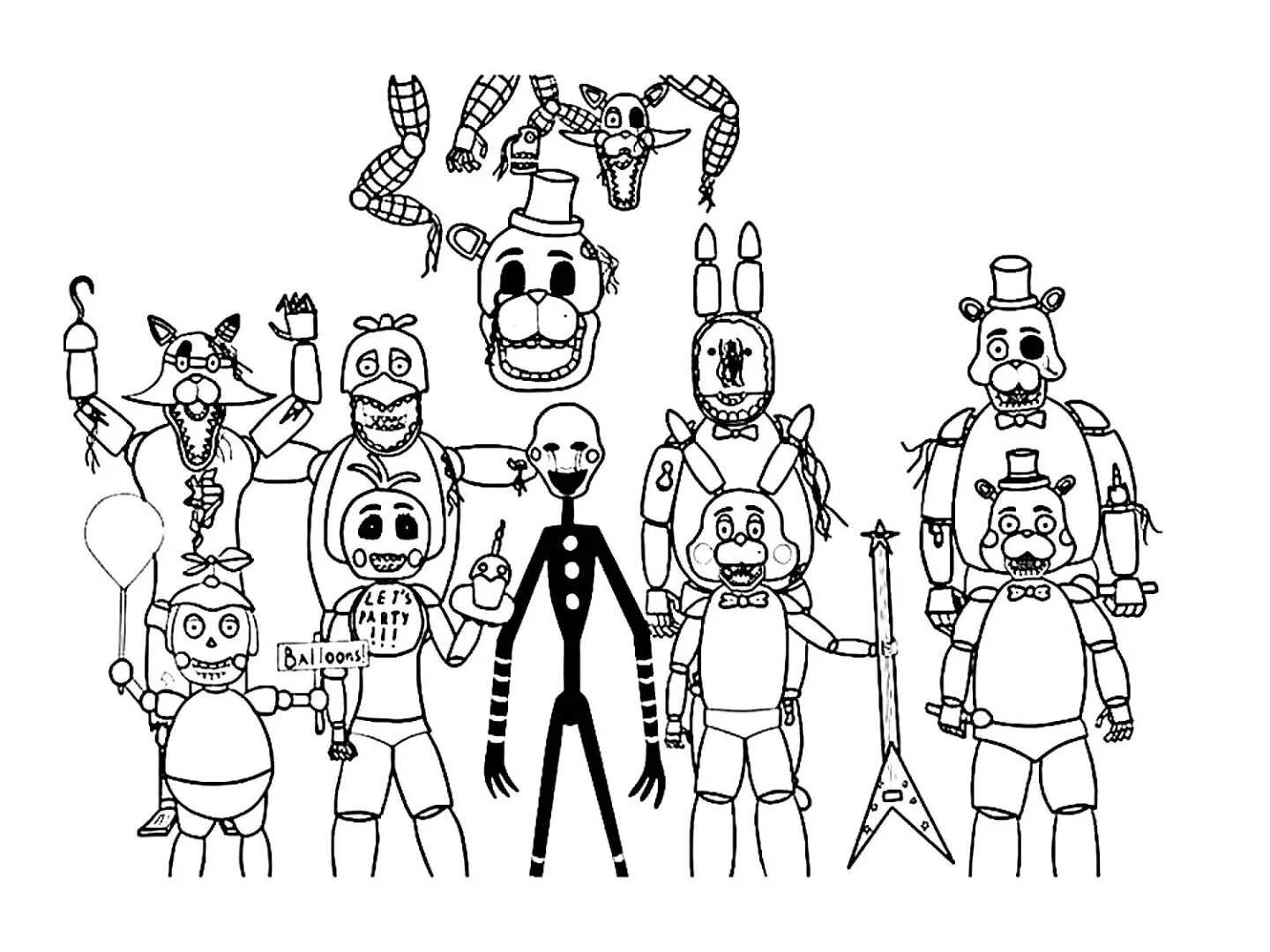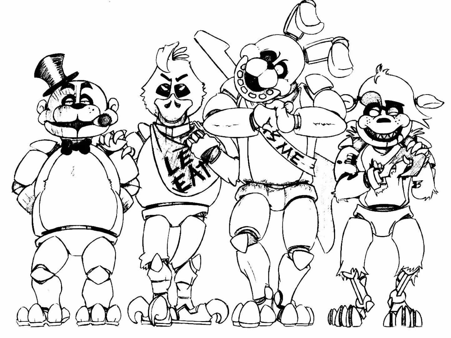 Five night’s at Freddy’s – это одна из популярных игр среди детей. Именно по этой причине мы представляем вам эту коллекцию раскрасок с героями FNAF, которая содержит более 100 изображений, созданных для удовольствия детей всех возрастов. Раскрашивание этой коллекции страниц героев игры поможет развивать в ребенке творческие способности – он сможет придумать свои сцены и нарисовать героев с расцветкой в соответствии со своими предпочтениями.