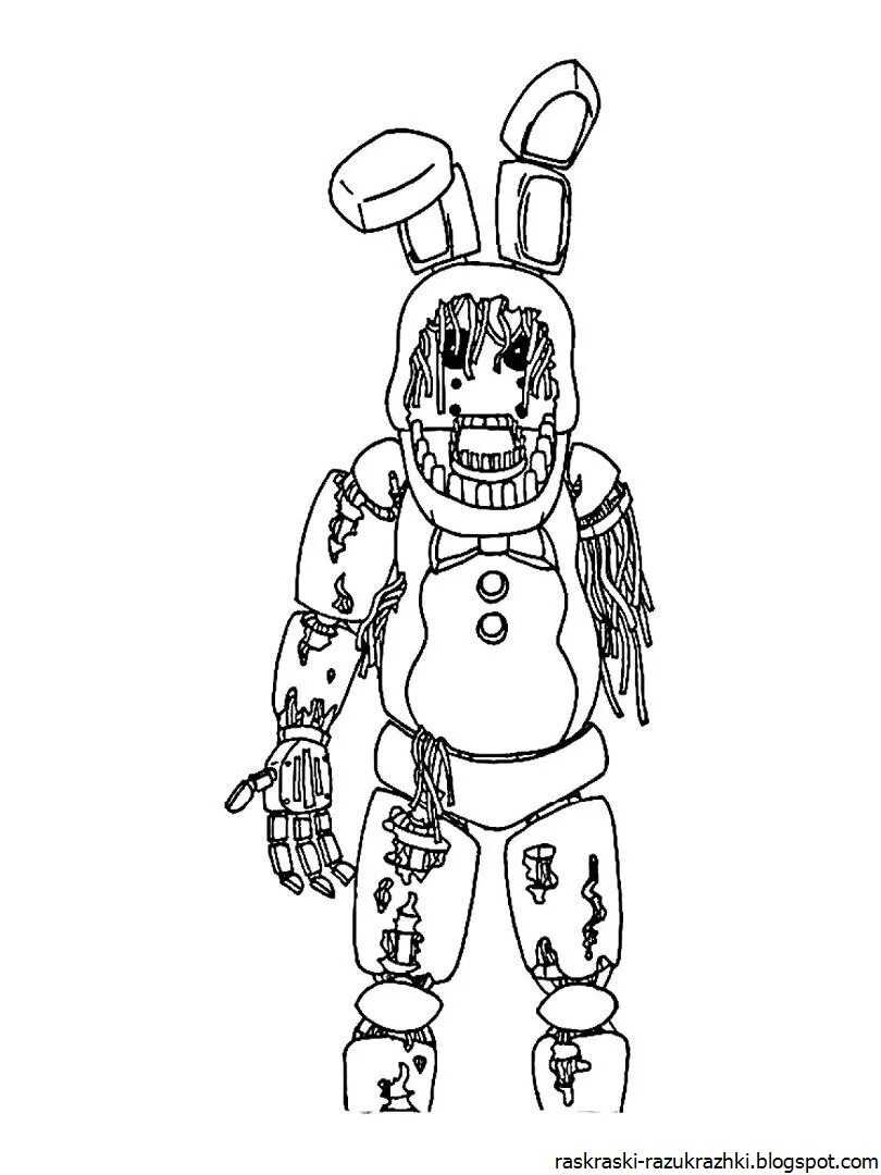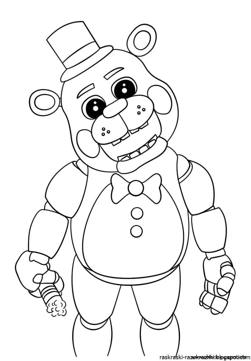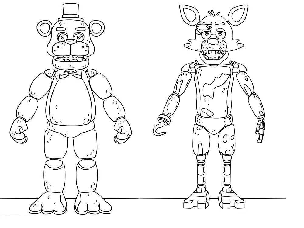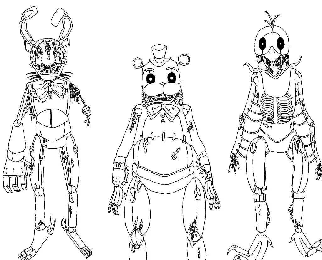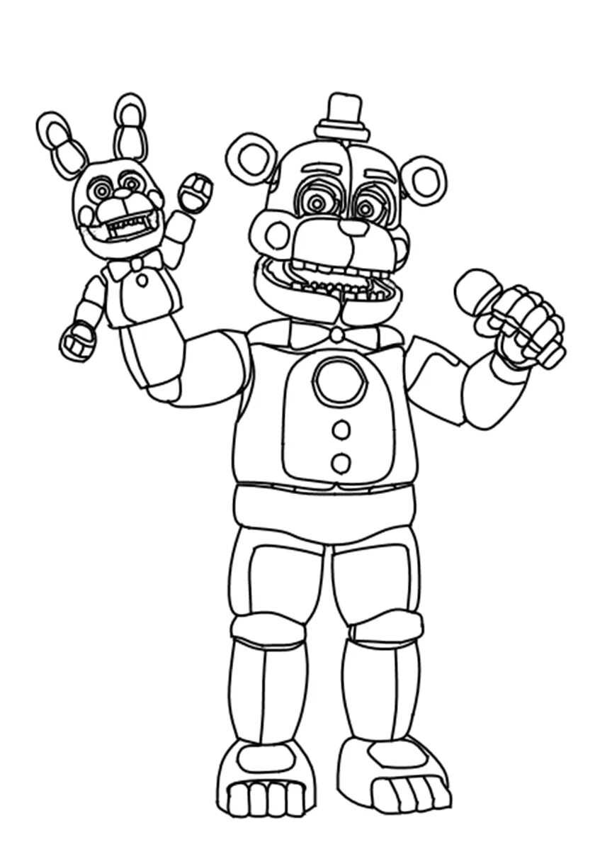 Five night’s at Freddy’s – это одна из популярных игр среди детей. Именно по этой причине мы представляем вам эту коллекцию раскрасок с героями FNAF, которая содержит более 100 изображений, созданных для удовольствия детей всех возрастов. Раскрашивание этой коллекции страниц героев игры поможет развивать в ребенке творческие способности – он сможет придумать свои сцены и нарисовать героев с расцветкой в соответствии со своими предпочтениями.