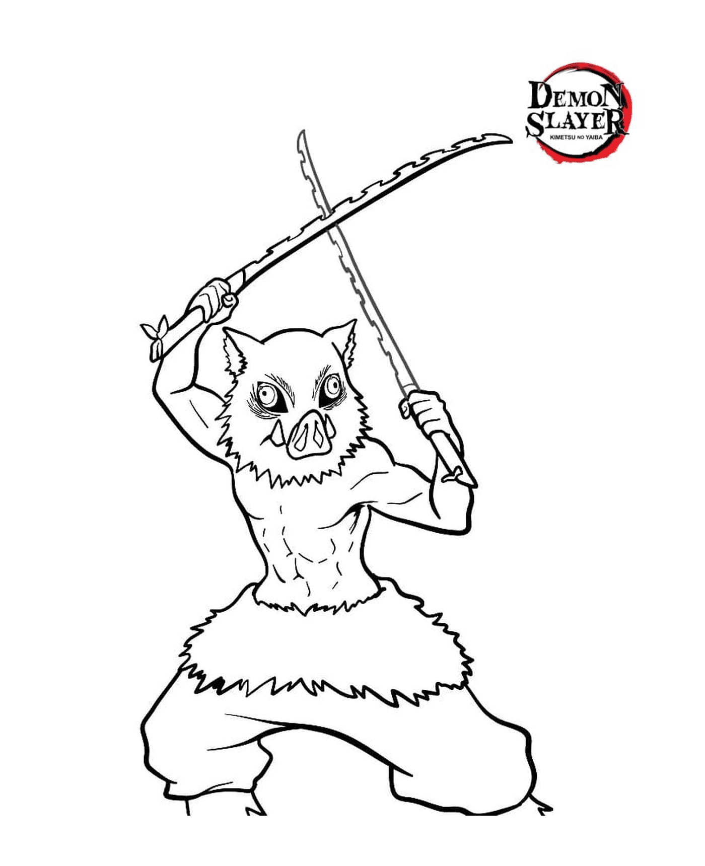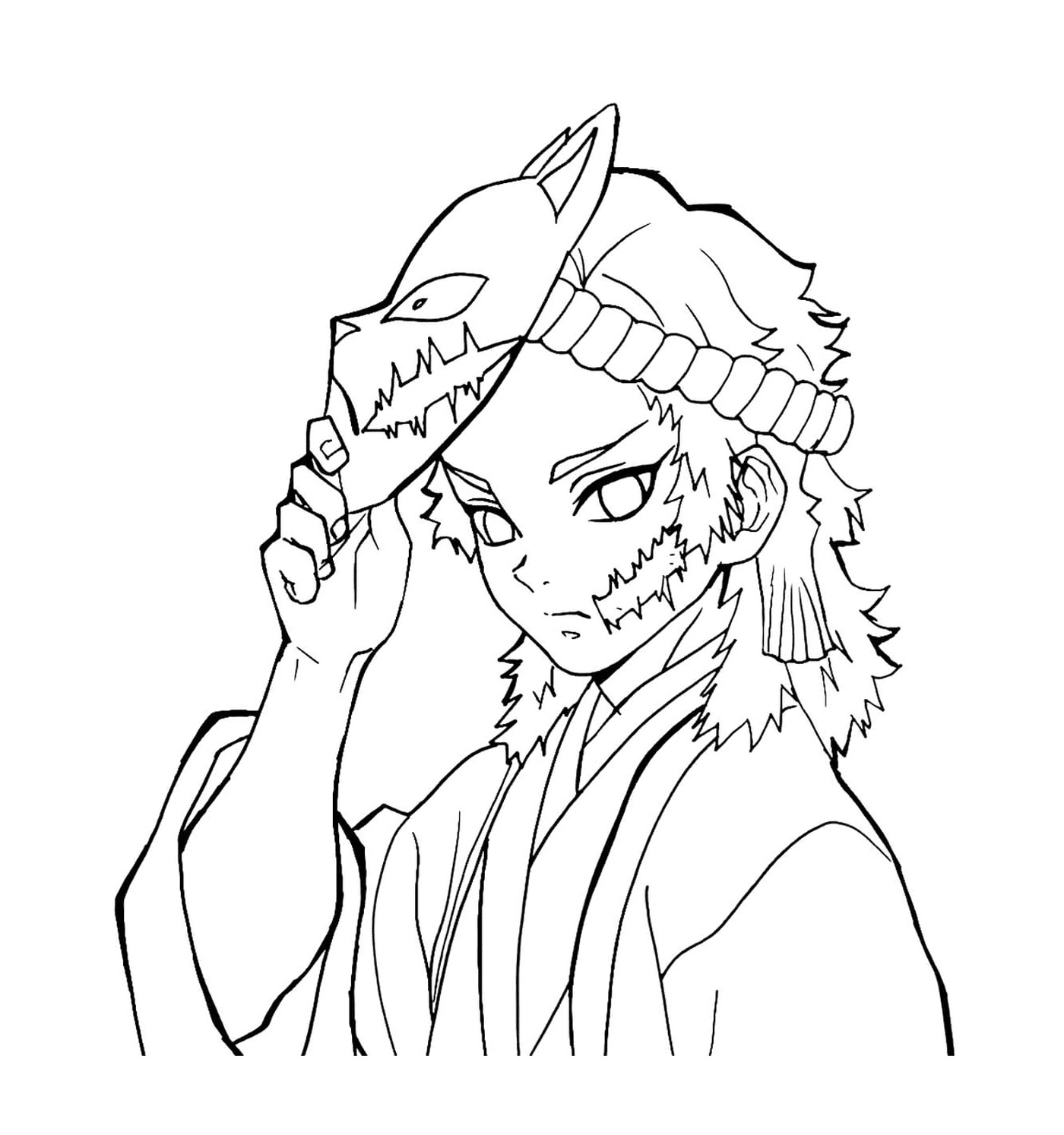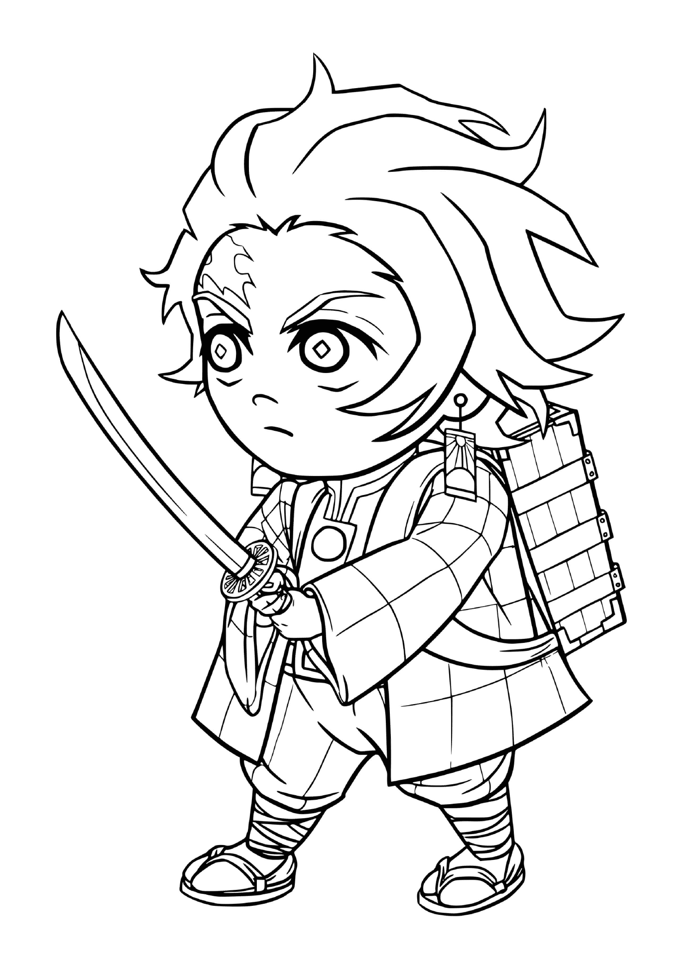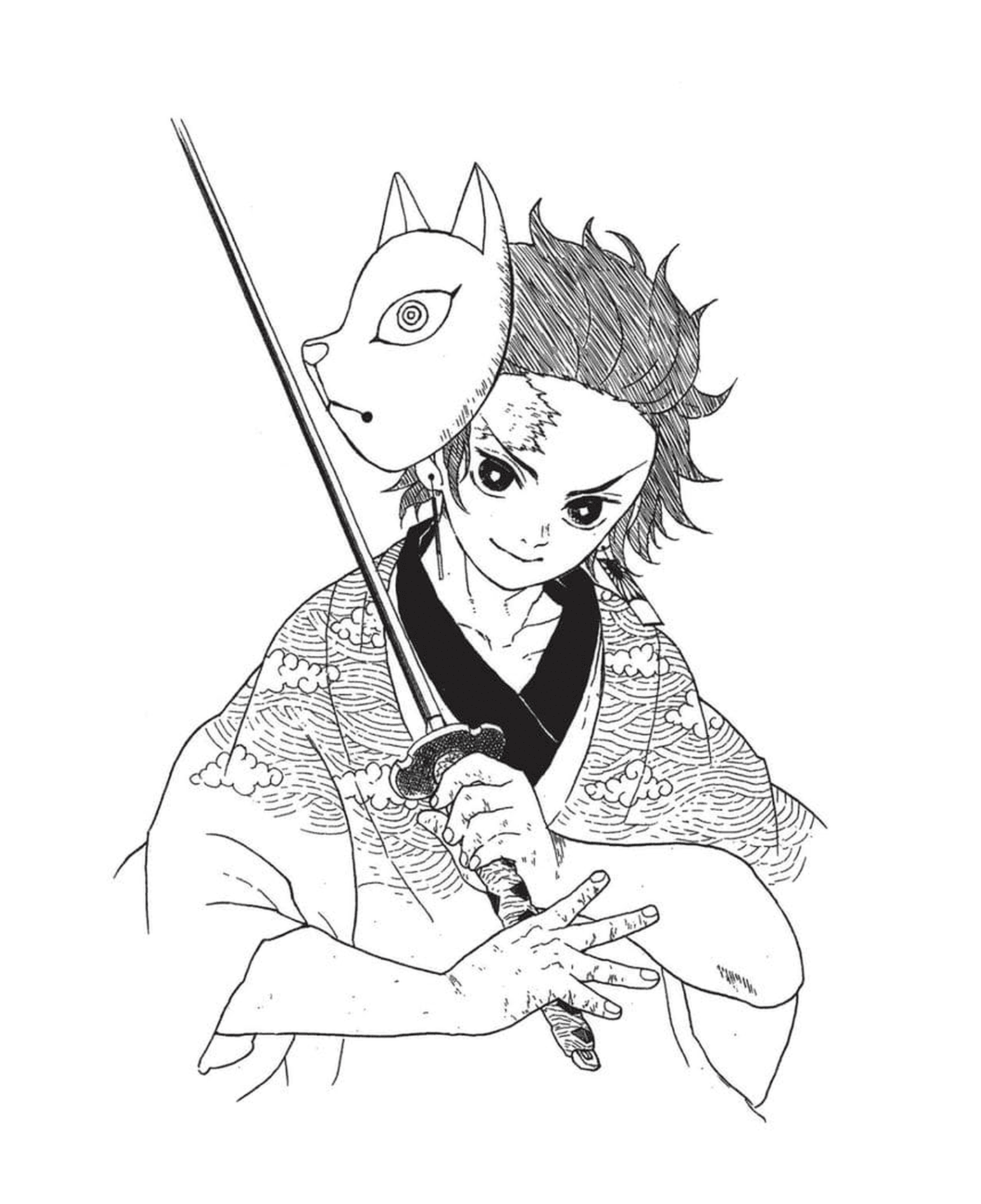 Танджиро с маской и мечомСкачать раскраскуРаспечатать раскраску