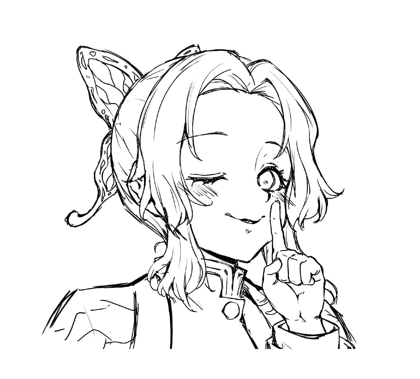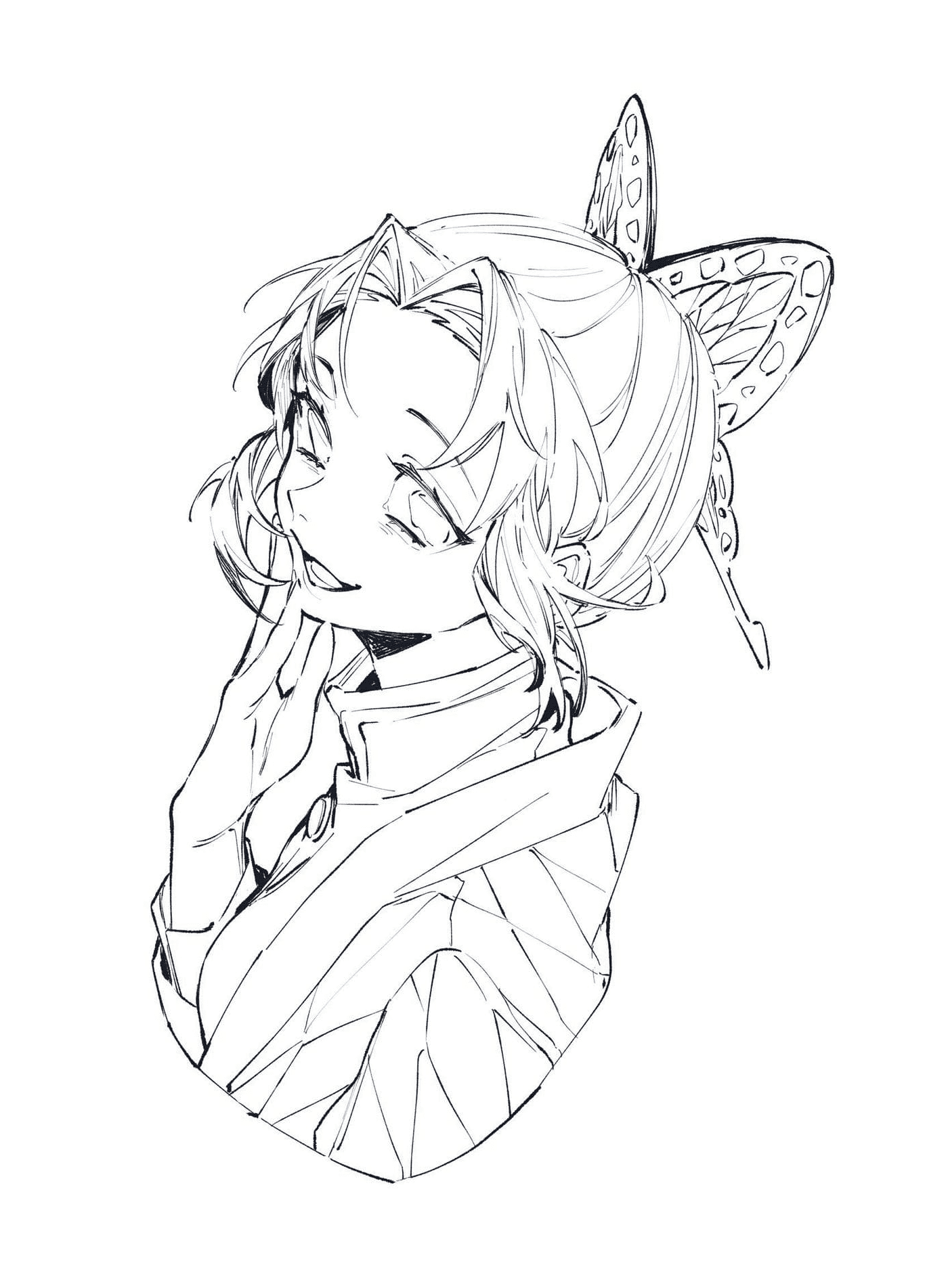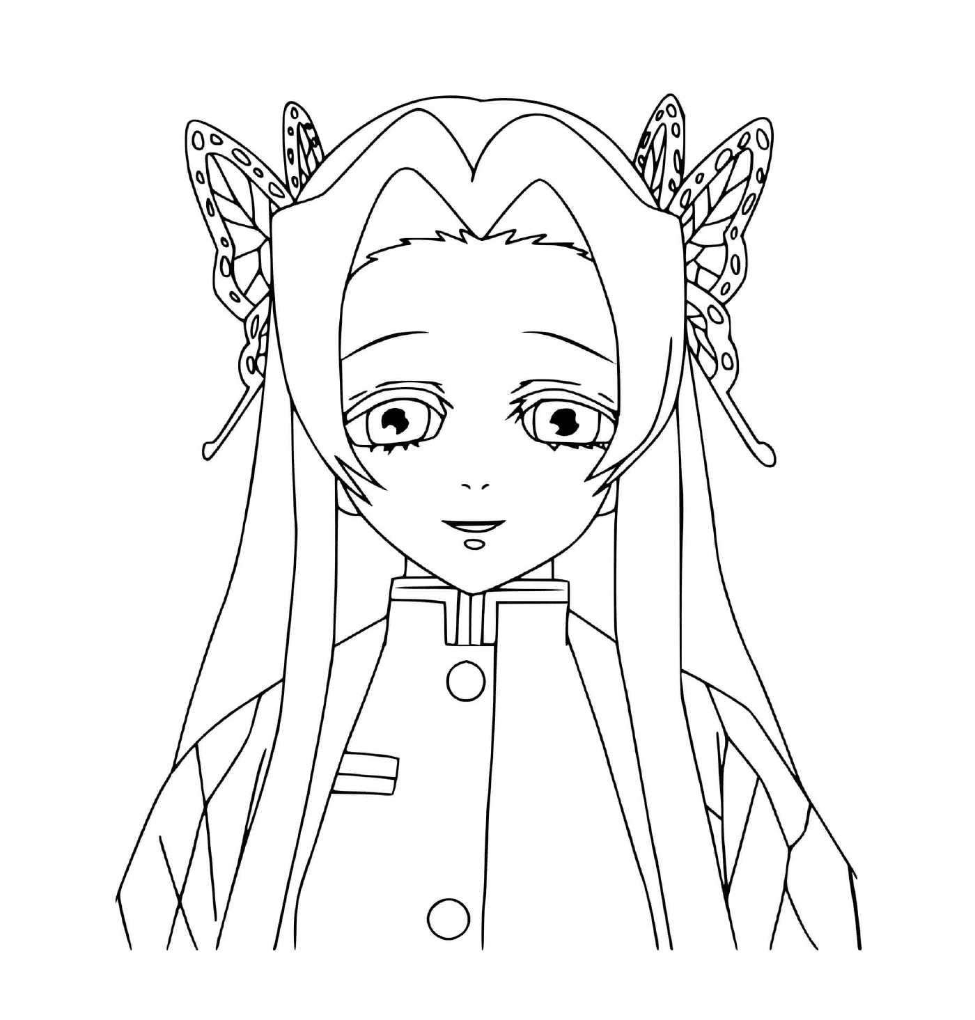 Синобу Кочо смеется, бабочка на головеСкачать раскраскуРаспечатать раскраску