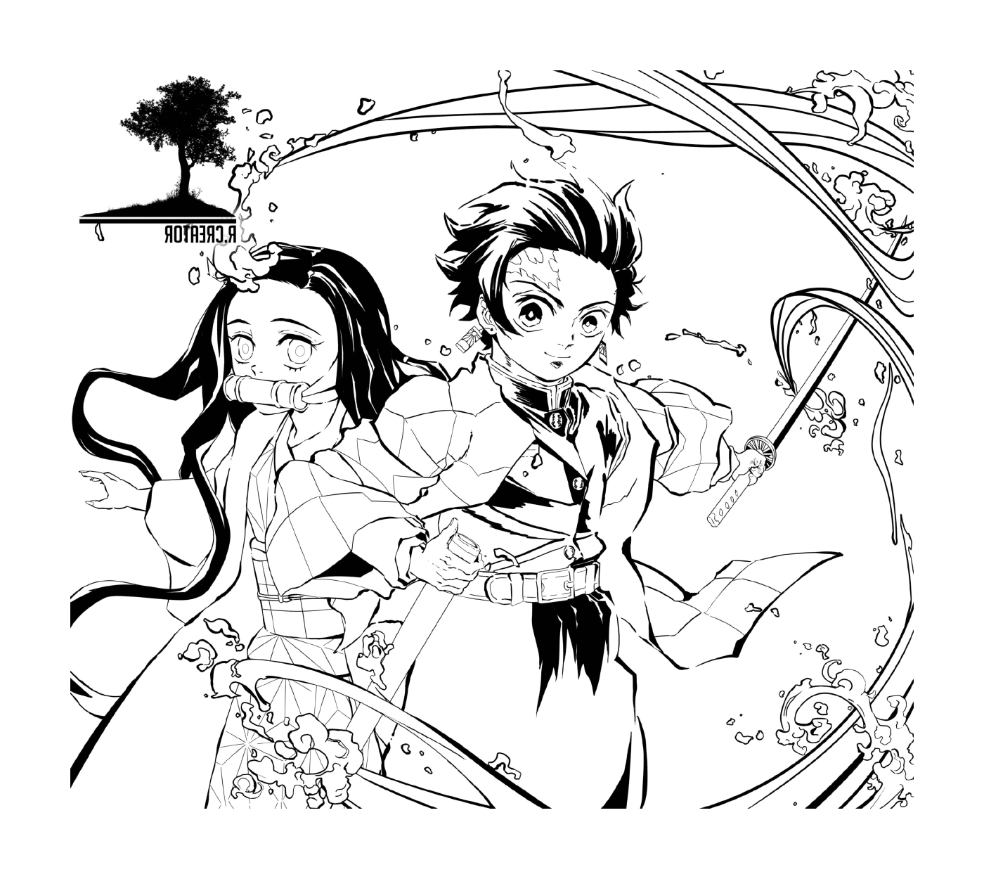 Танджиро Камадо и его сестраСкачать раскраскуРаспечатать раскраску