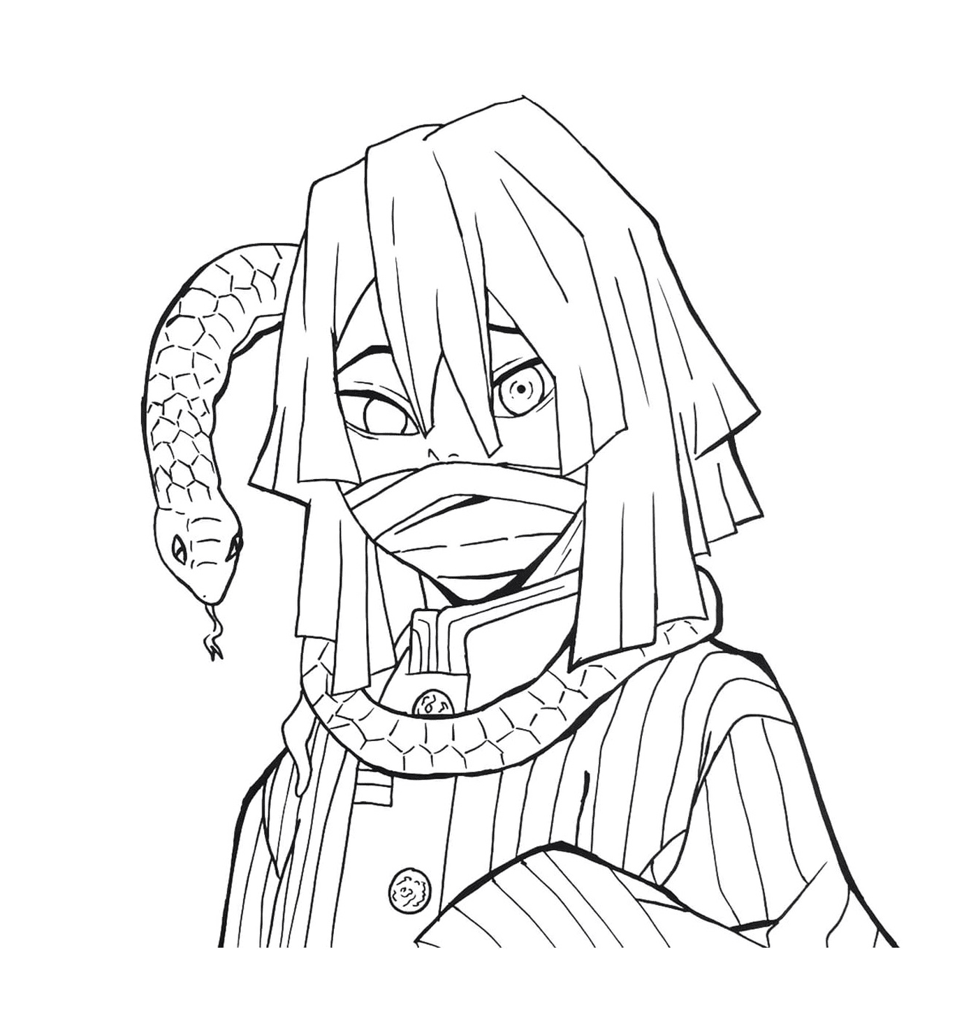 Обанай Игуро со змеейСкачать раскраскуРаспечатать раскраску