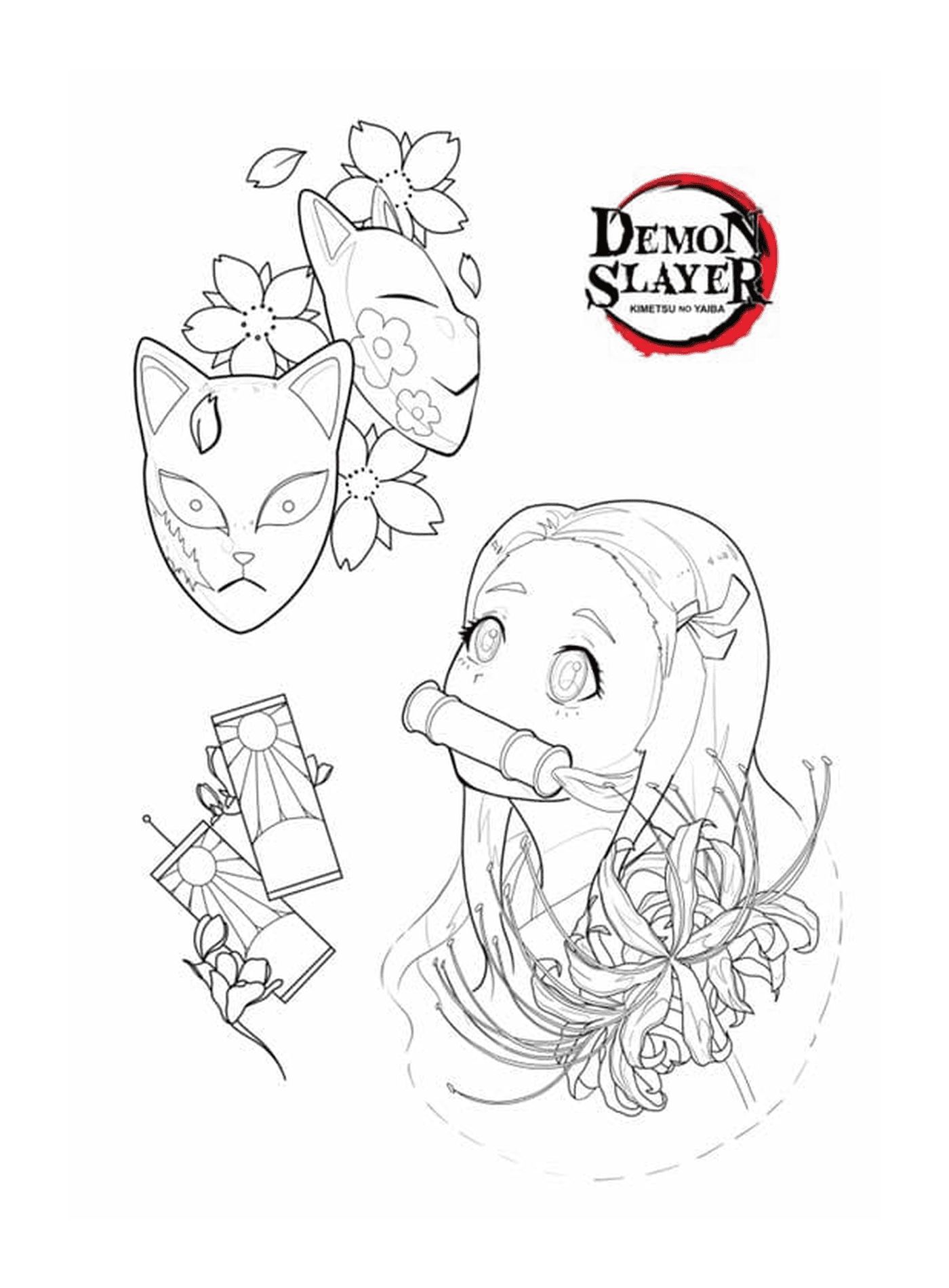 Незуко и маскиСкачать раскраскуРаспечатать раскраску