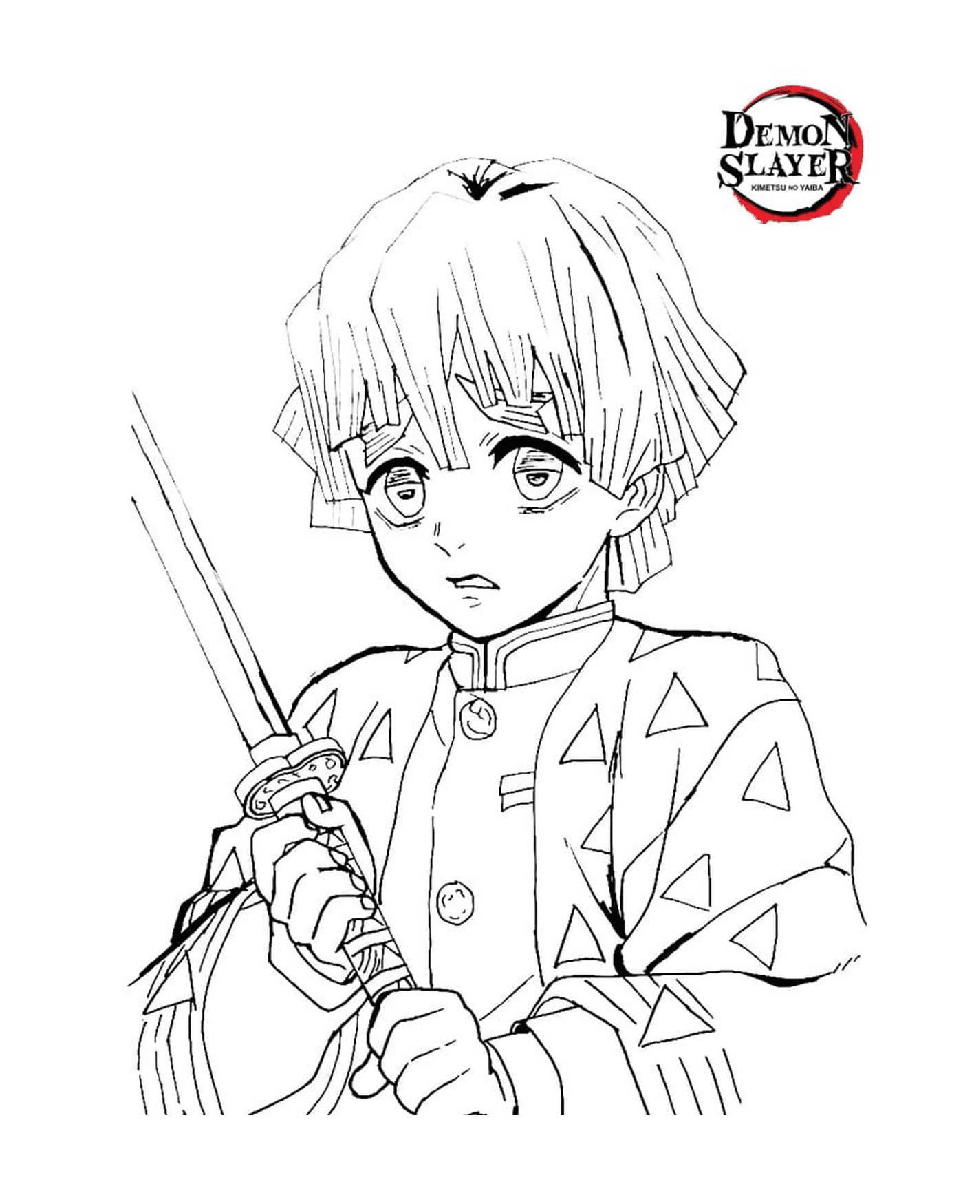 Зенитсу Агацума испугался, держа мечСкачать раскраскуРаспечатать раскраску
