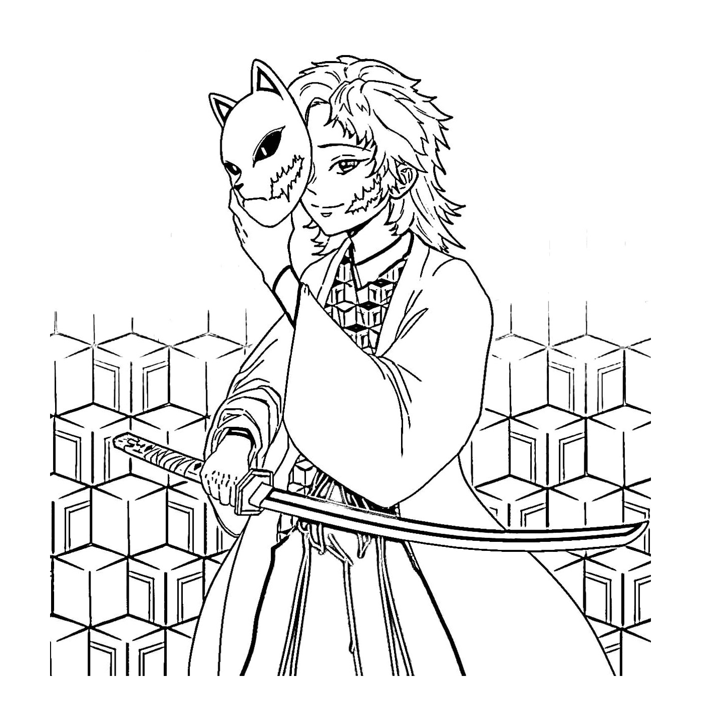 Сабито в маске, с мечомСкачать раскраскуРаспечатать раскраску