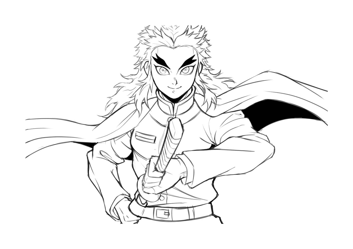 Киоджуро Ренгоку, охотник за демонамиСкачать раскраскуРаспечатать раскраску