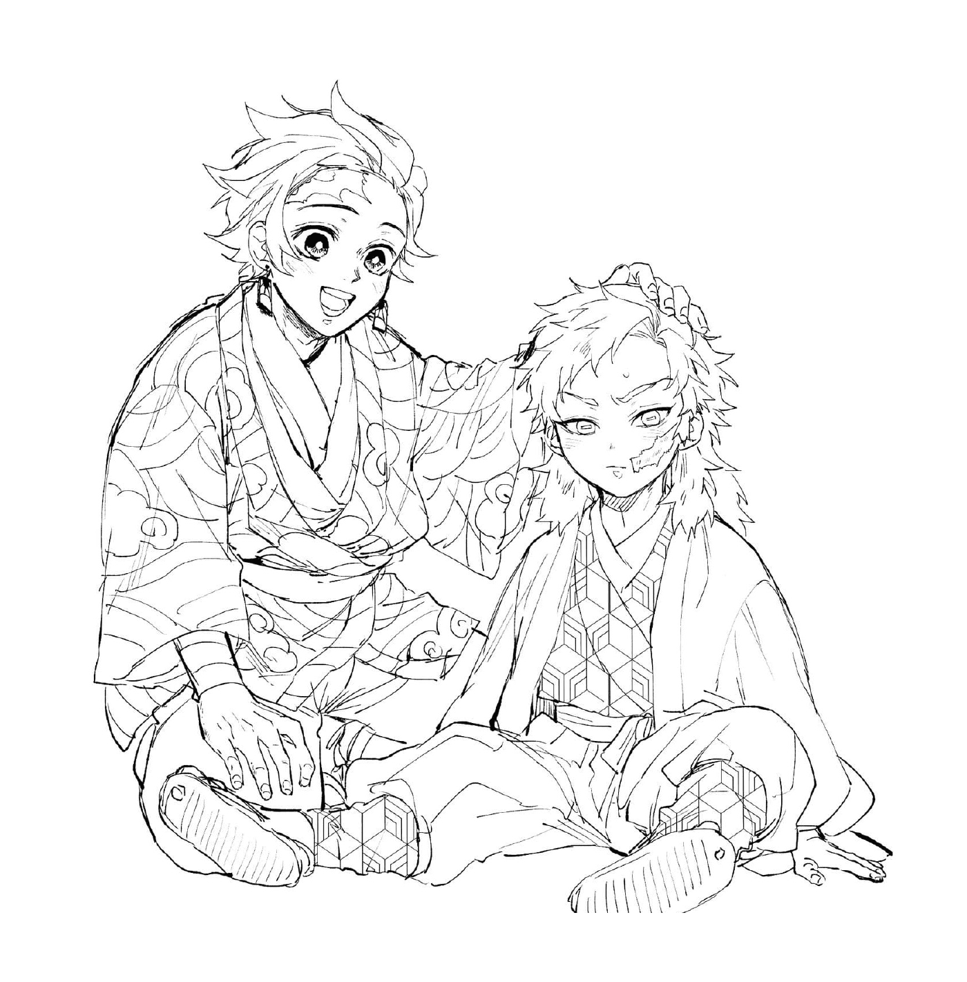 Танджиро и Сабито сидятСкачать раскраскуРаспечатать раскраску