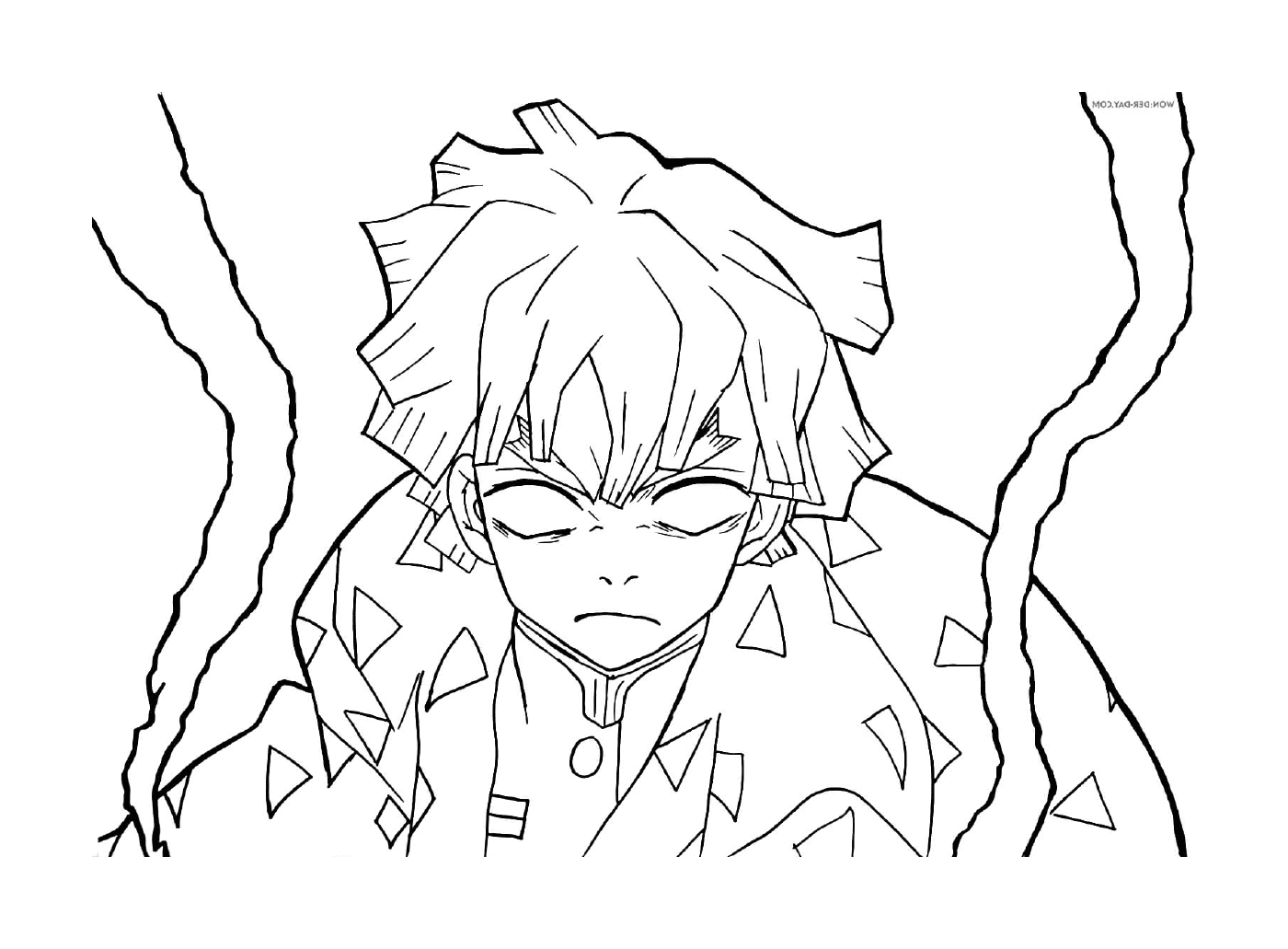 Зенитсу Агацума, грустный взглядСкачать раскраскуРаспечатать раскраску
