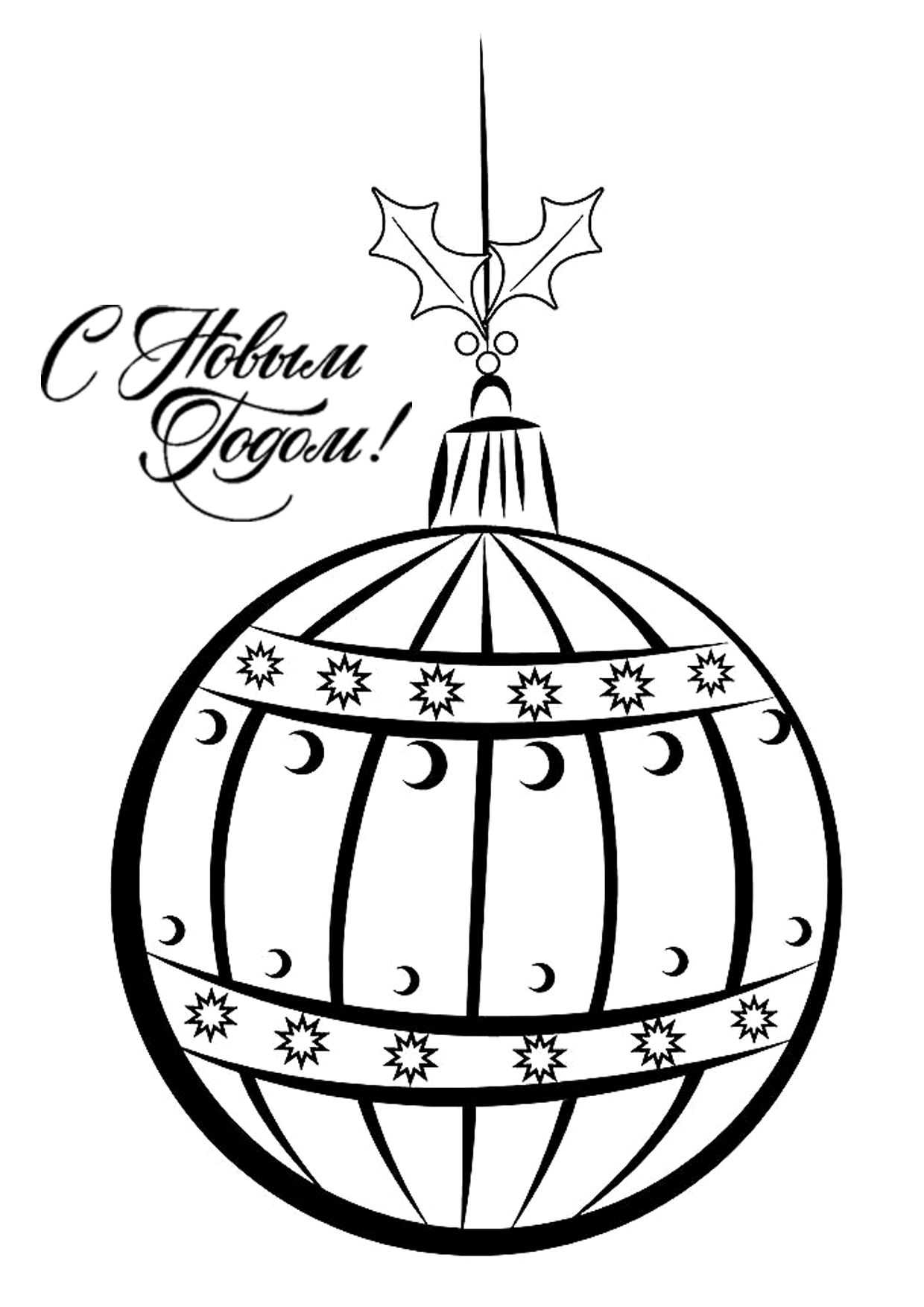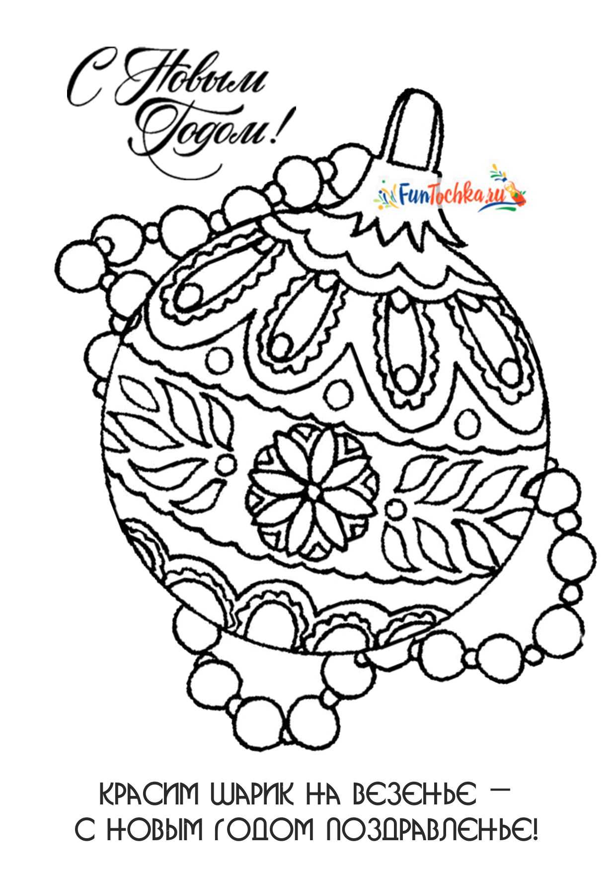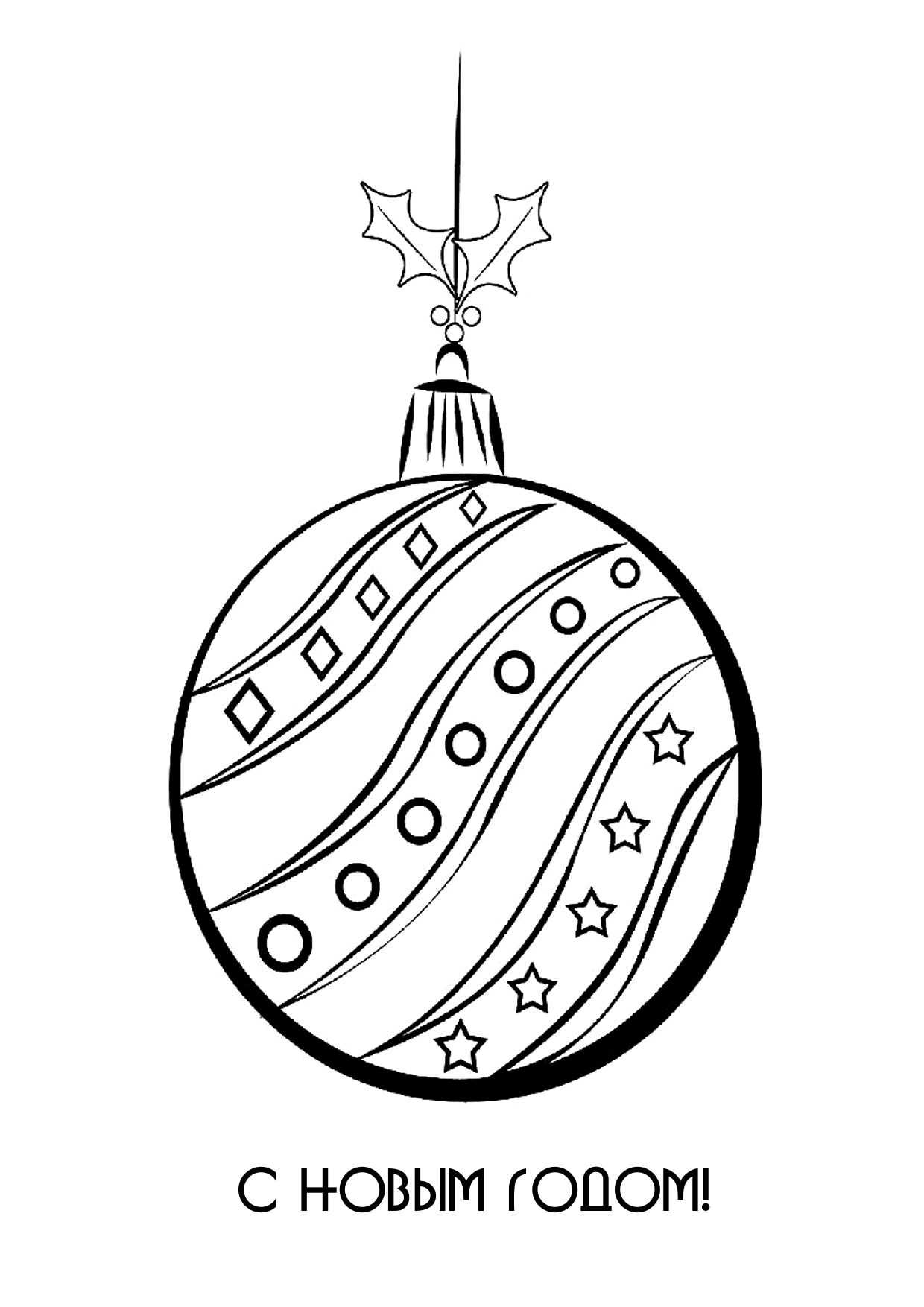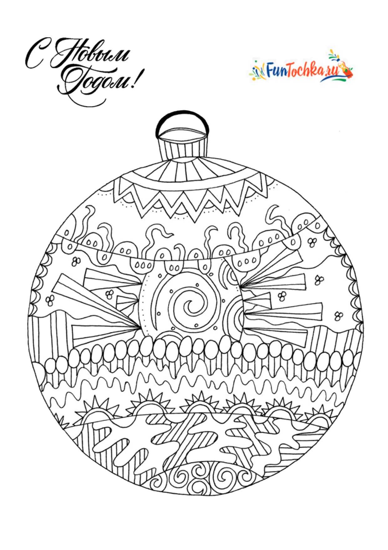 Большой новогодний шар с интересным узором — 16 раскрасок