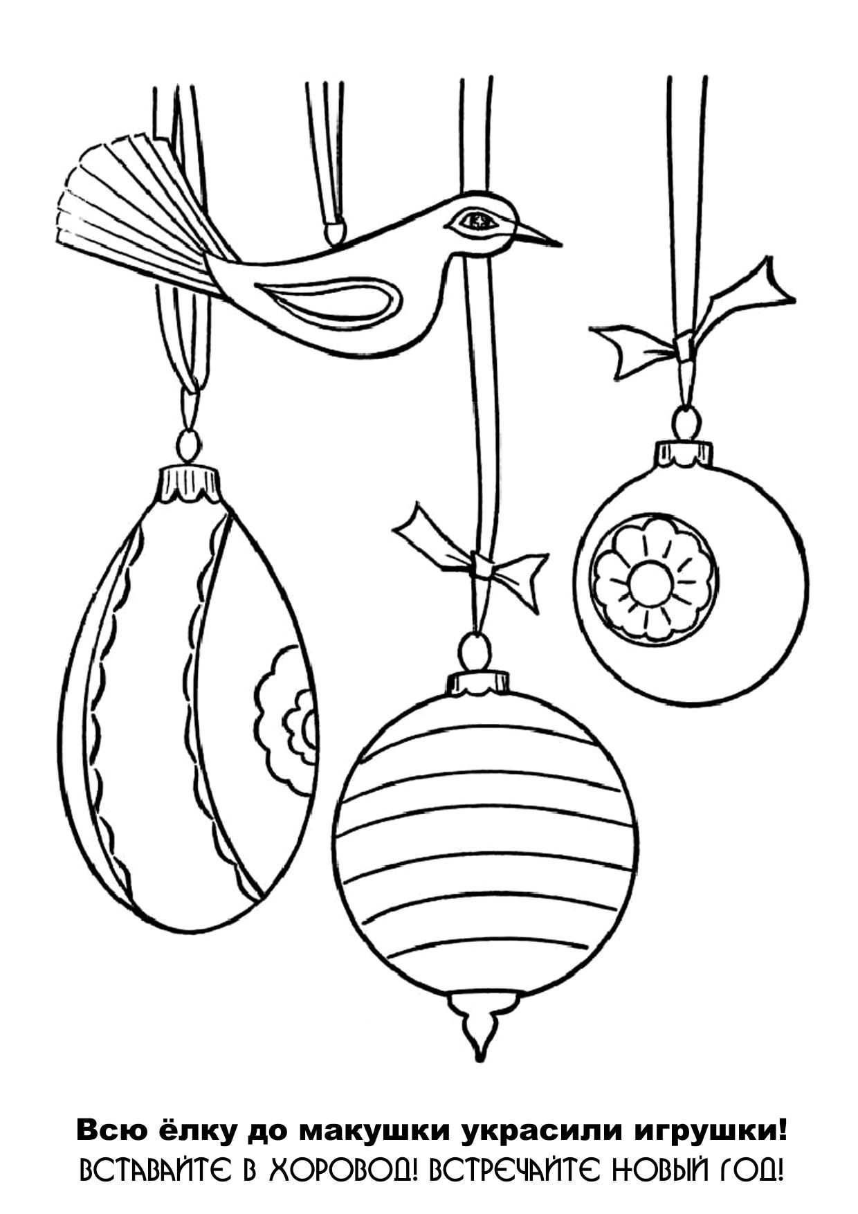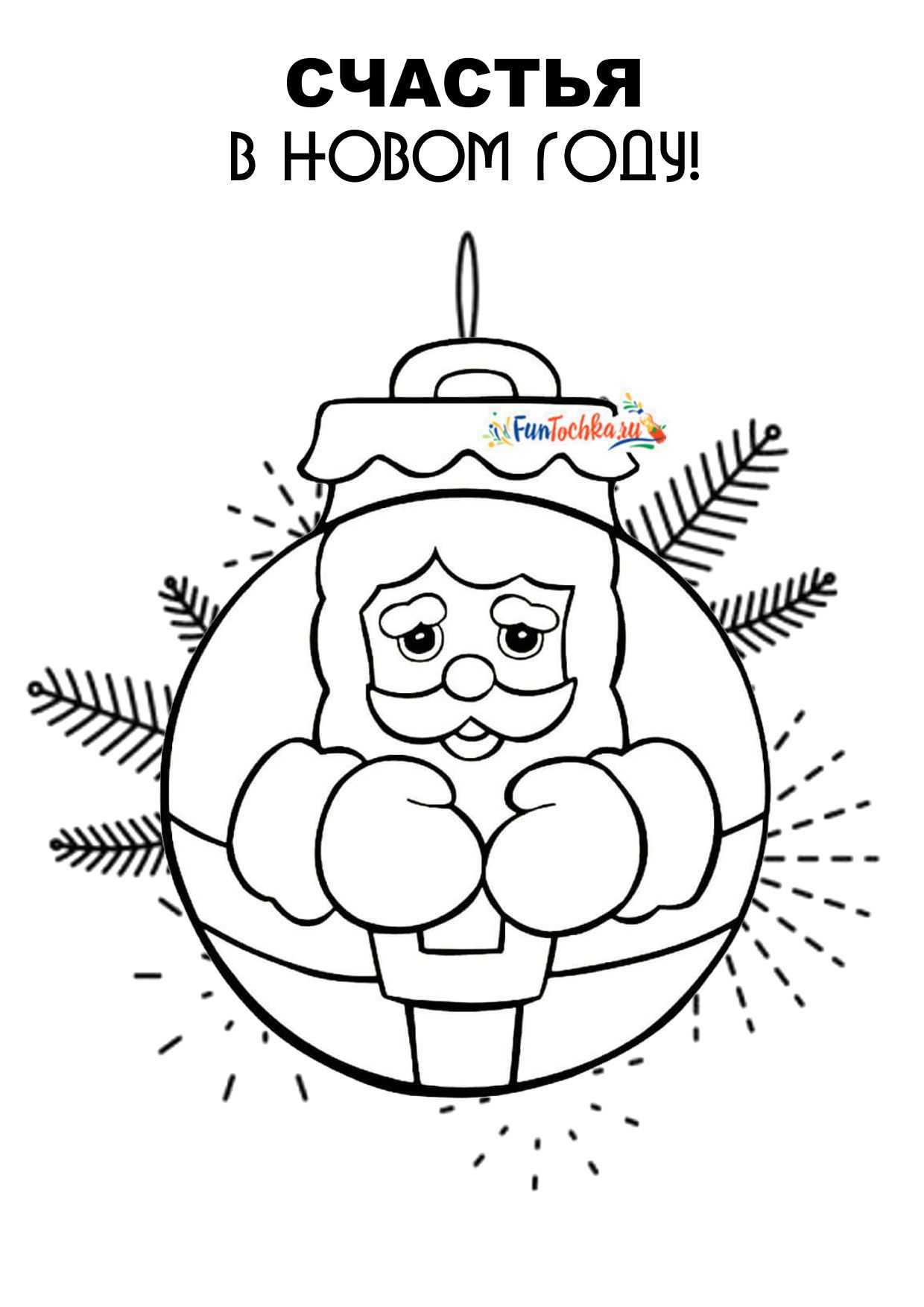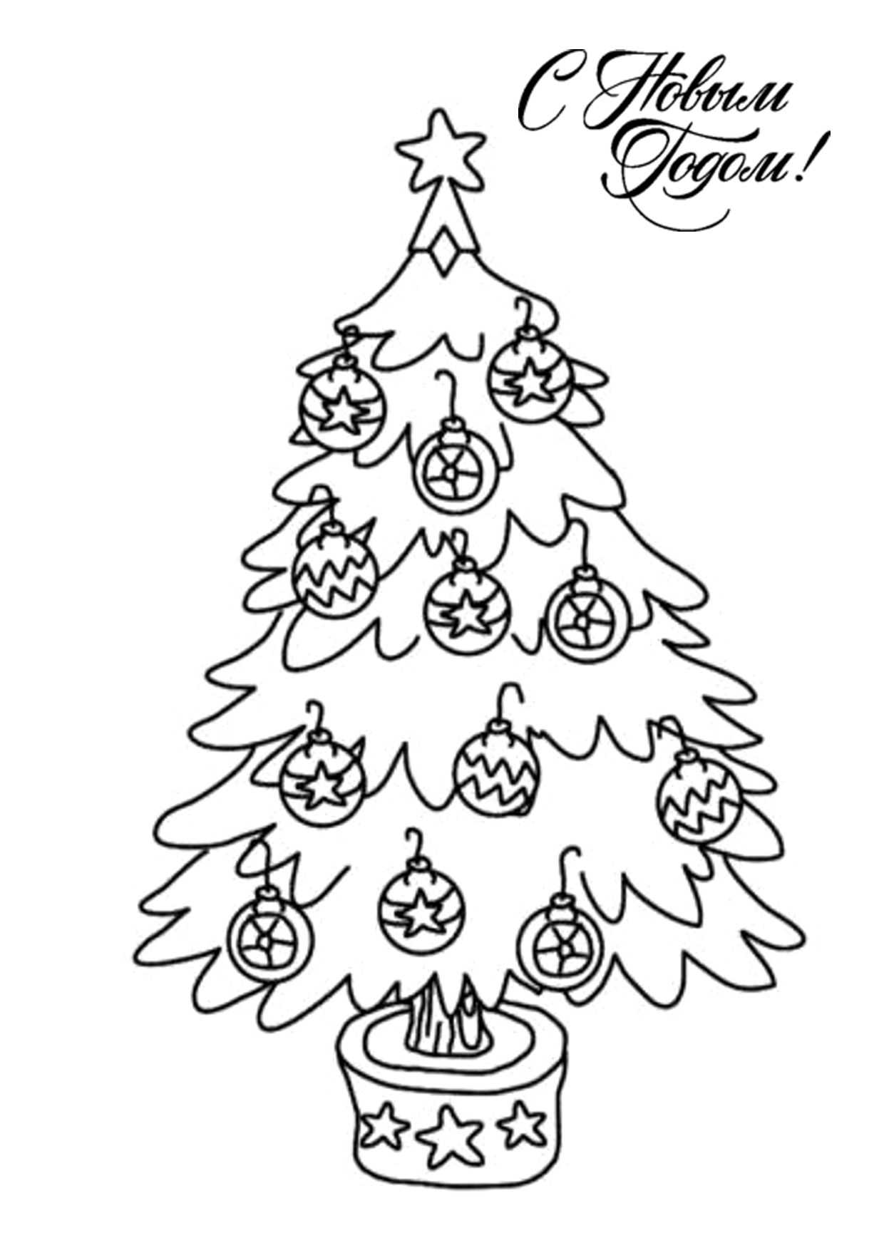 Елка с шарами и волшебные новогодние персонажи — 6 красивых раскрасок
