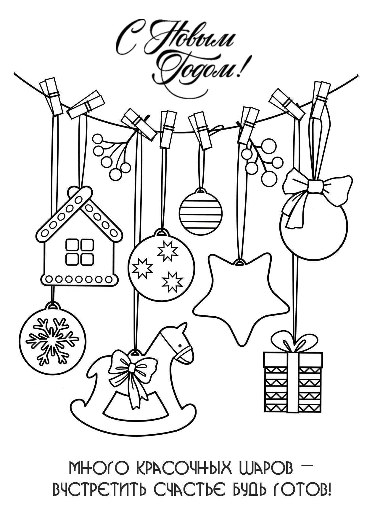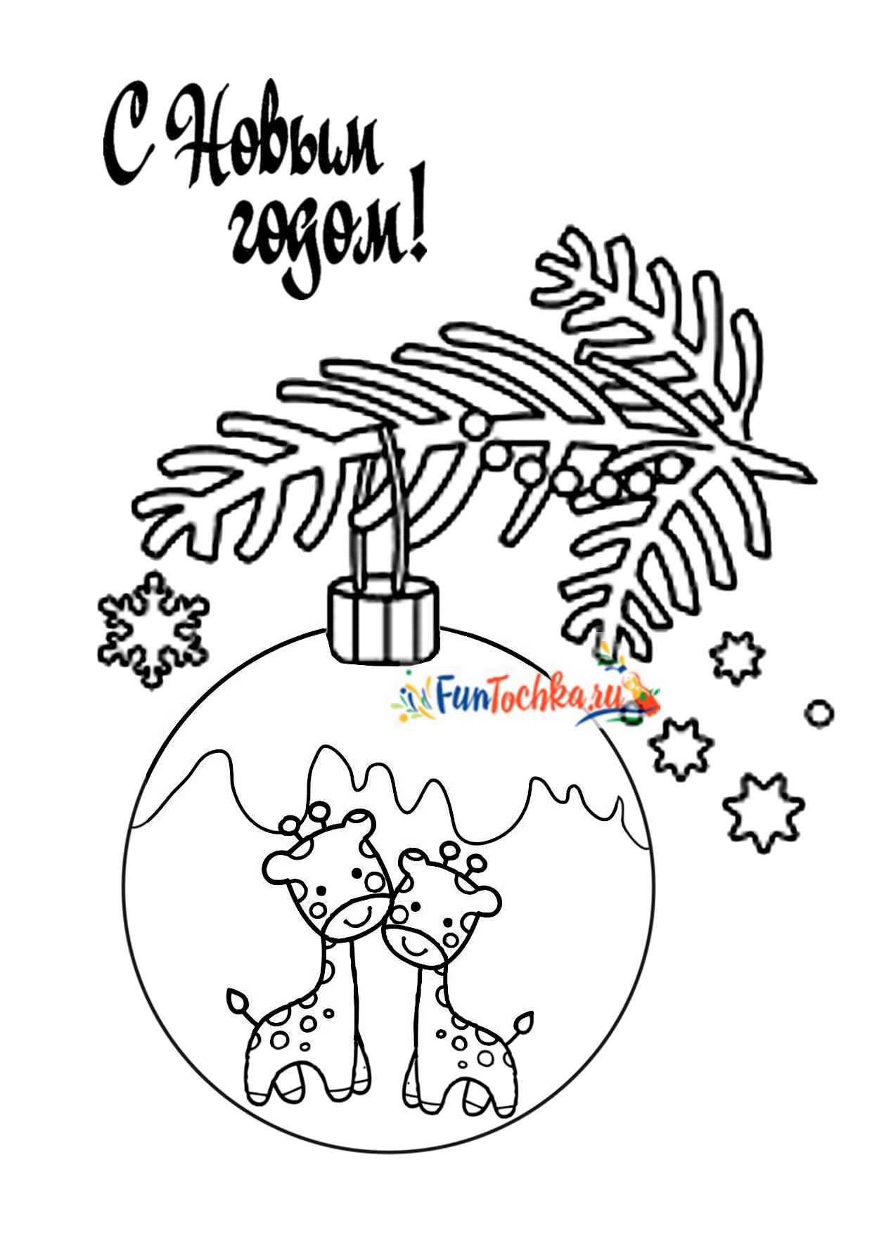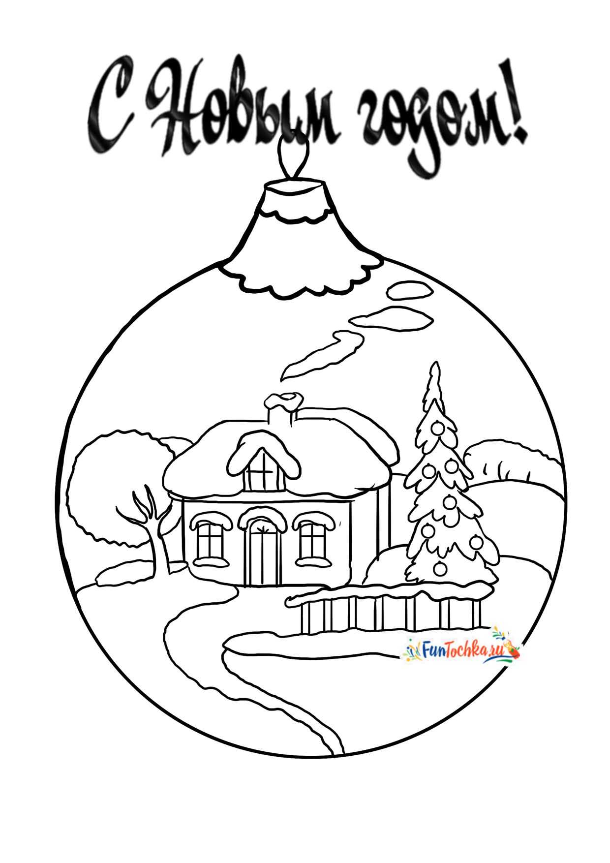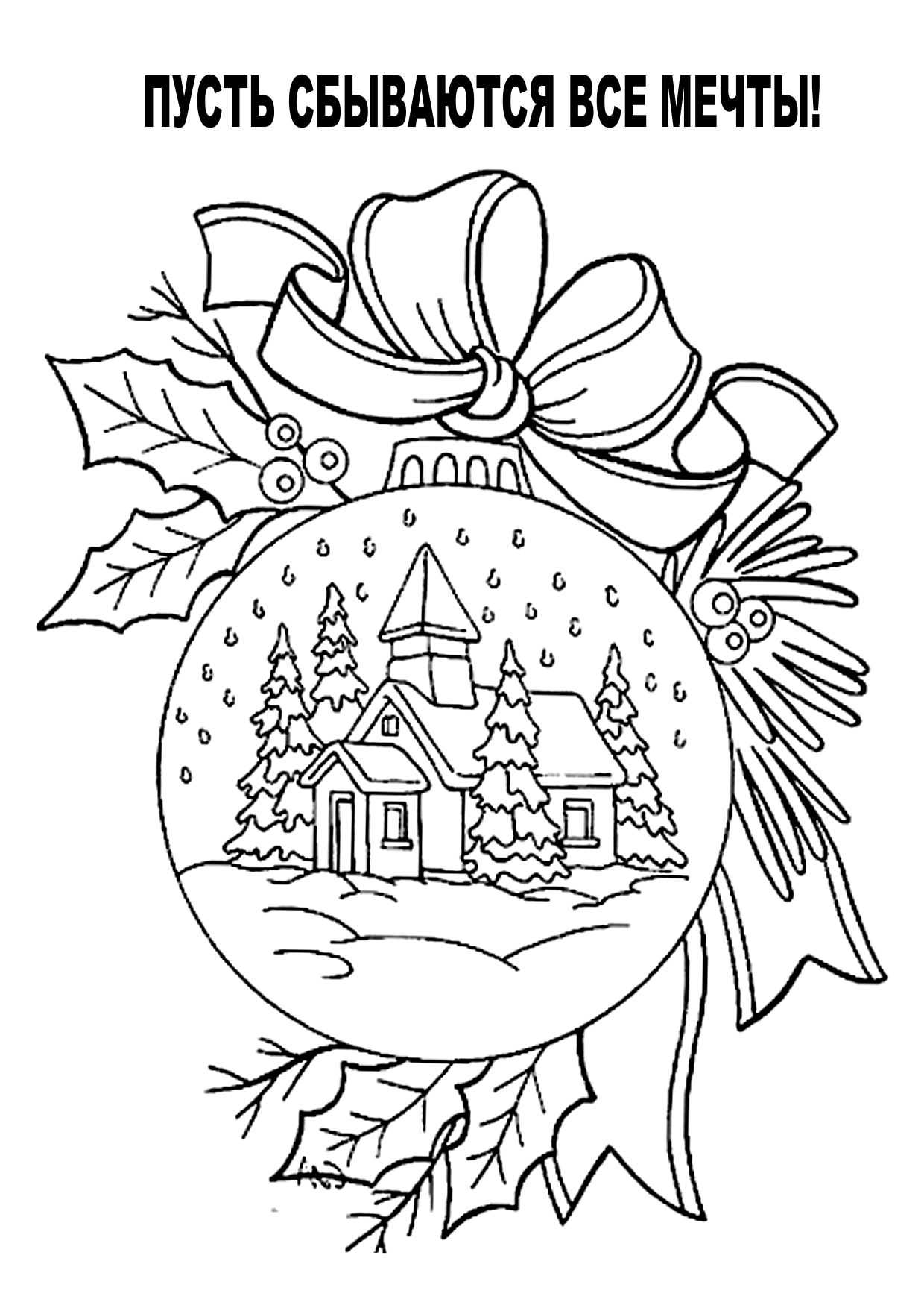 Елка с шарами и волшебные новогодние персонажи — 6 красивых раскрасок