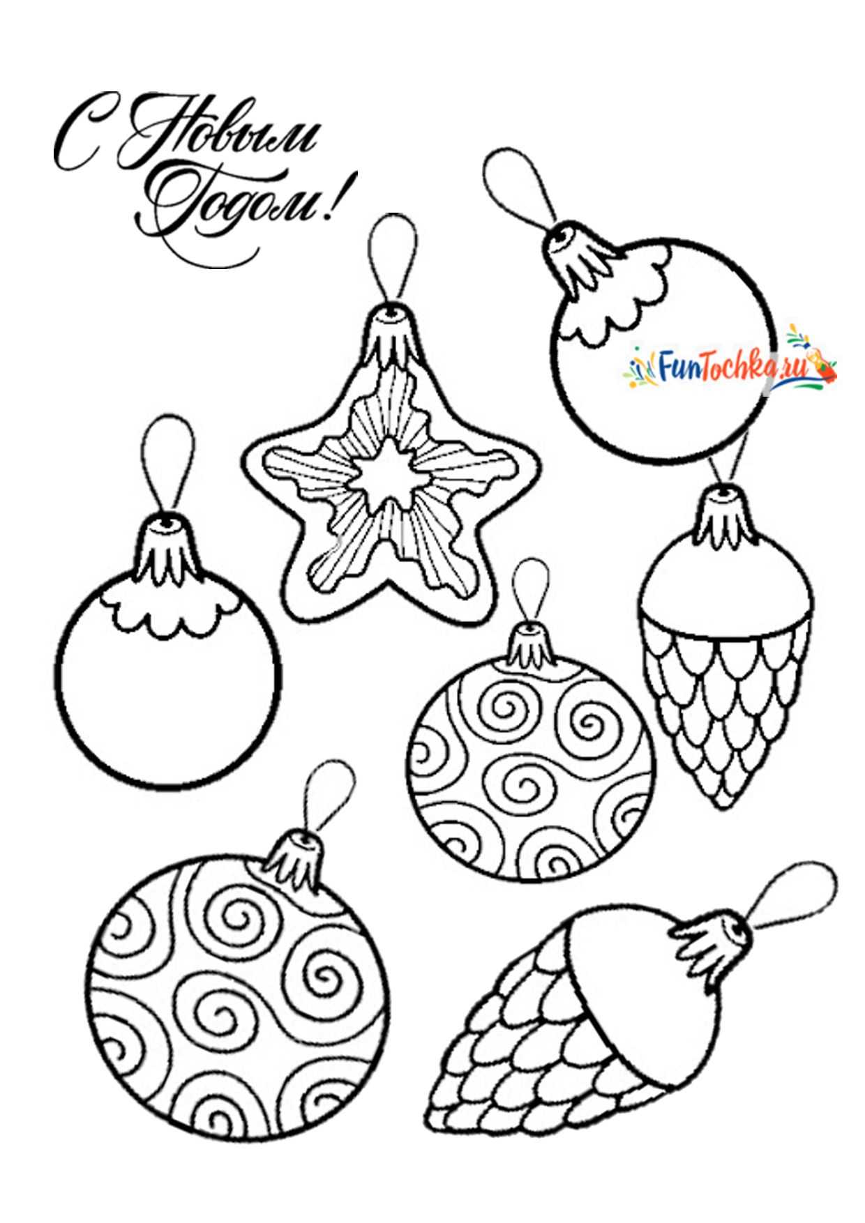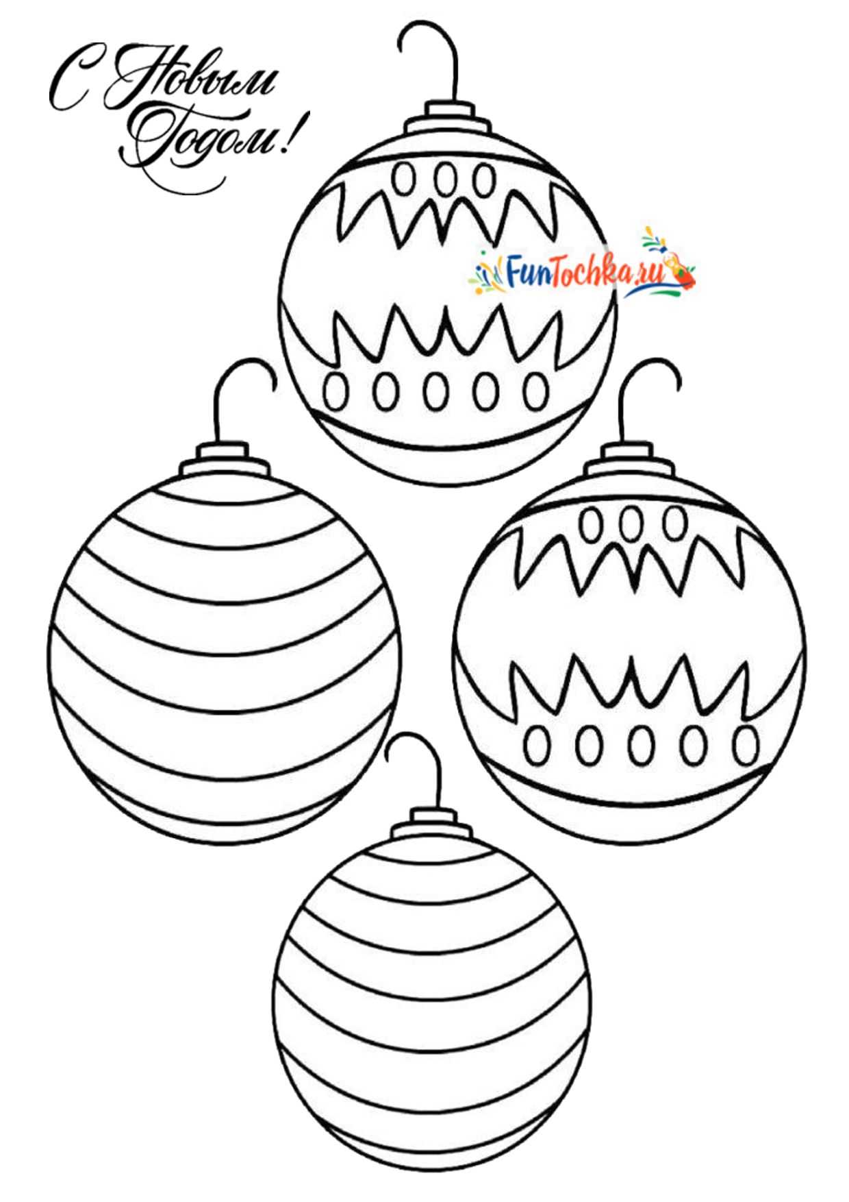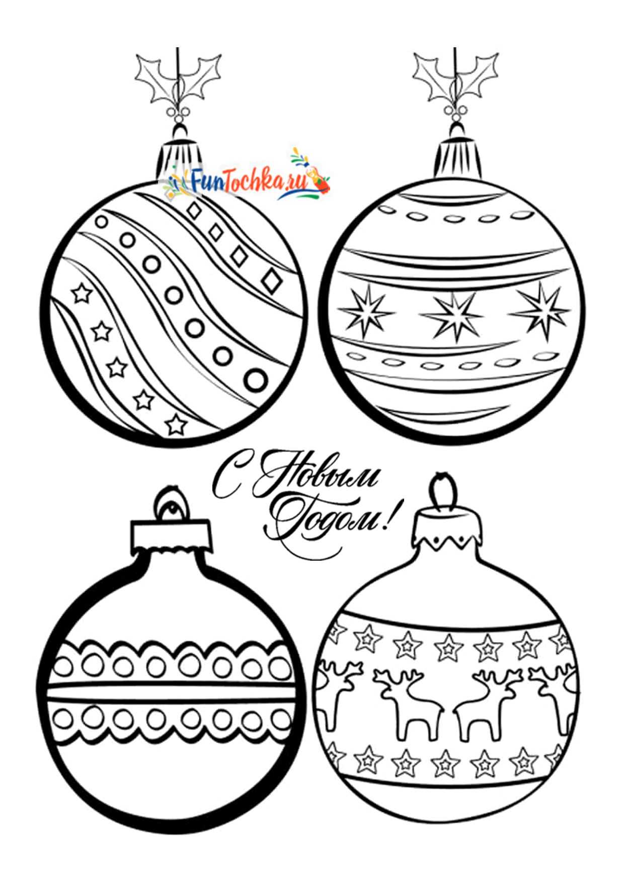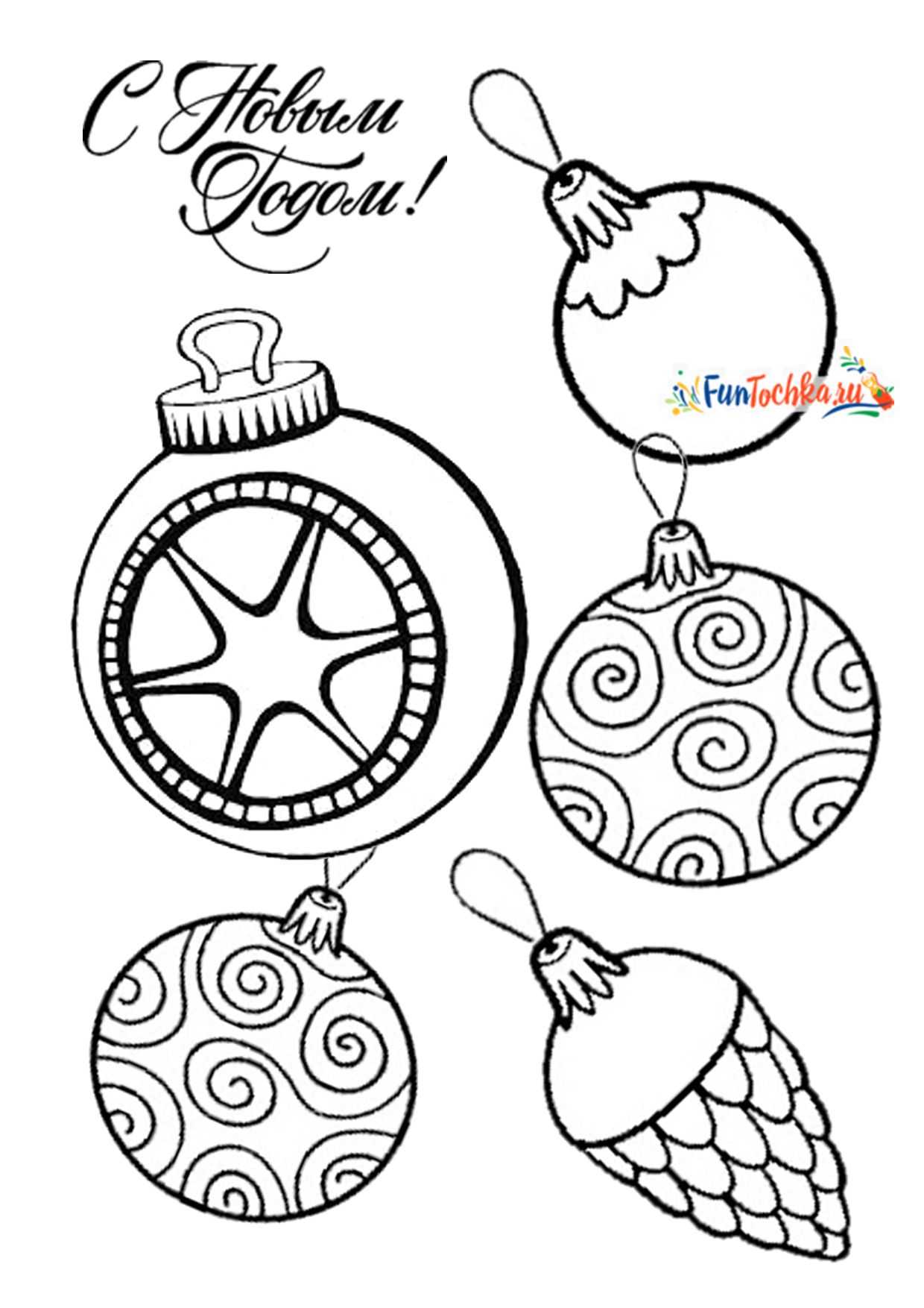 Разные новогодние шары и игрушки на листе А4 — 18 шаблонов
