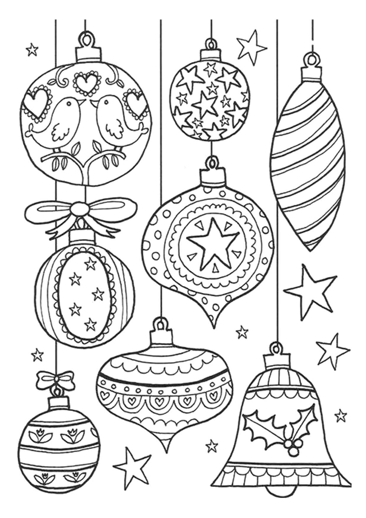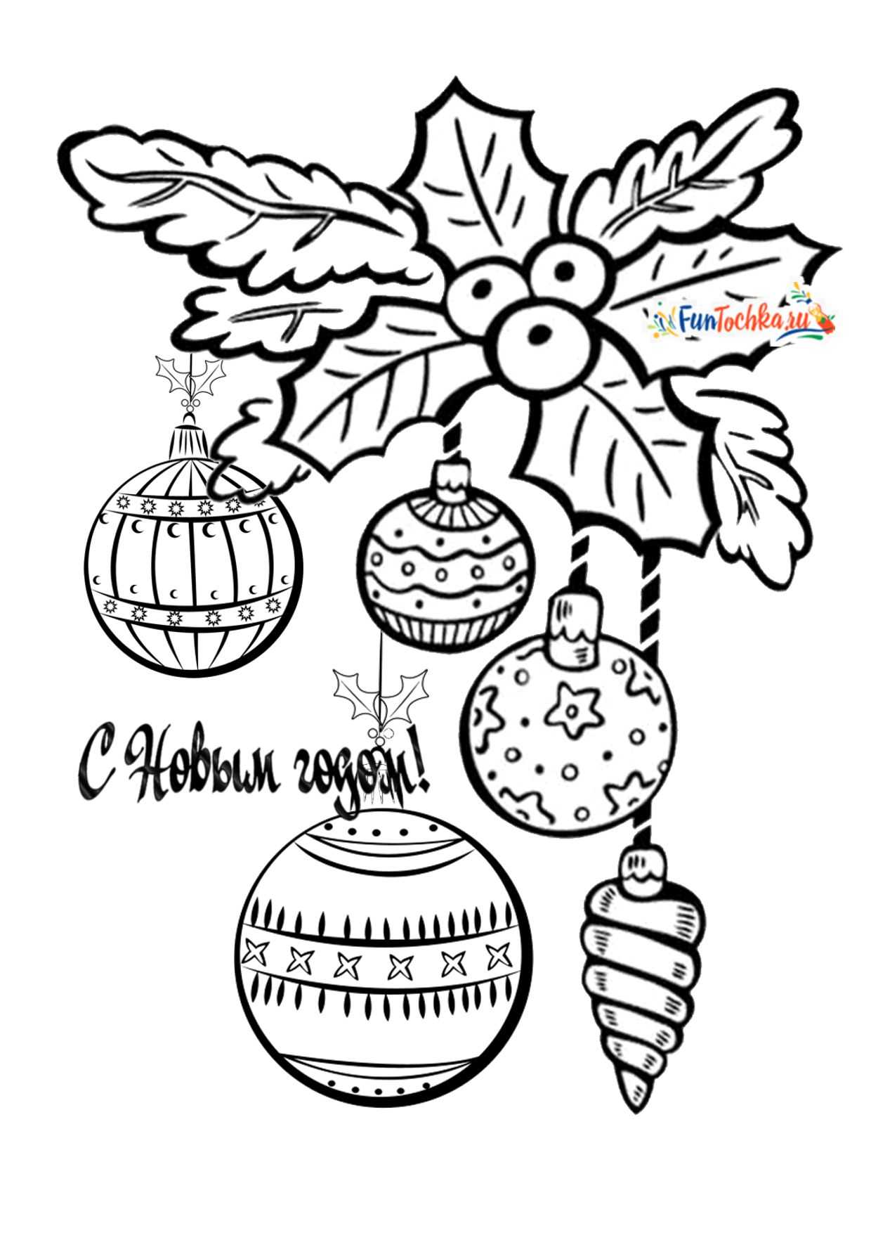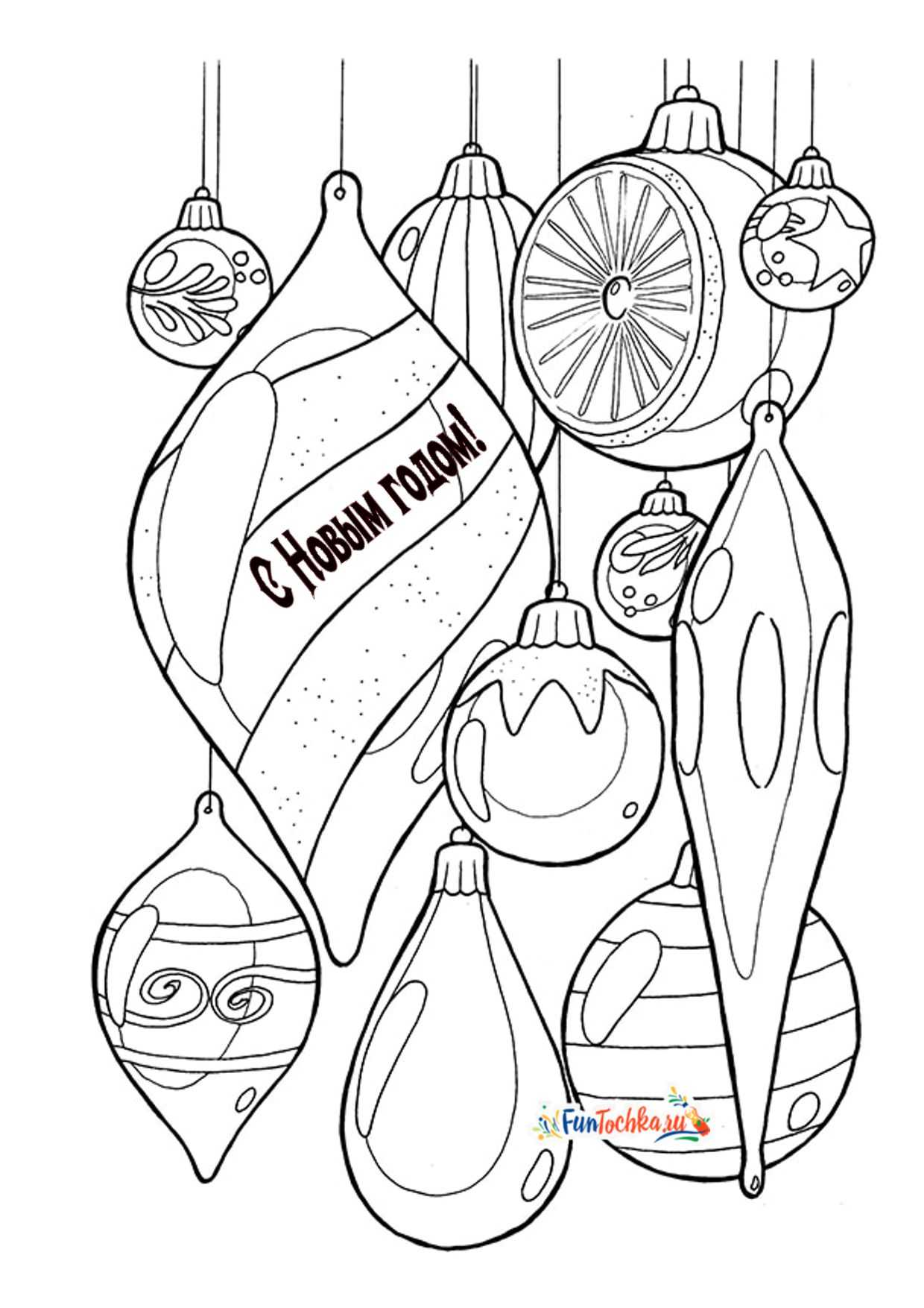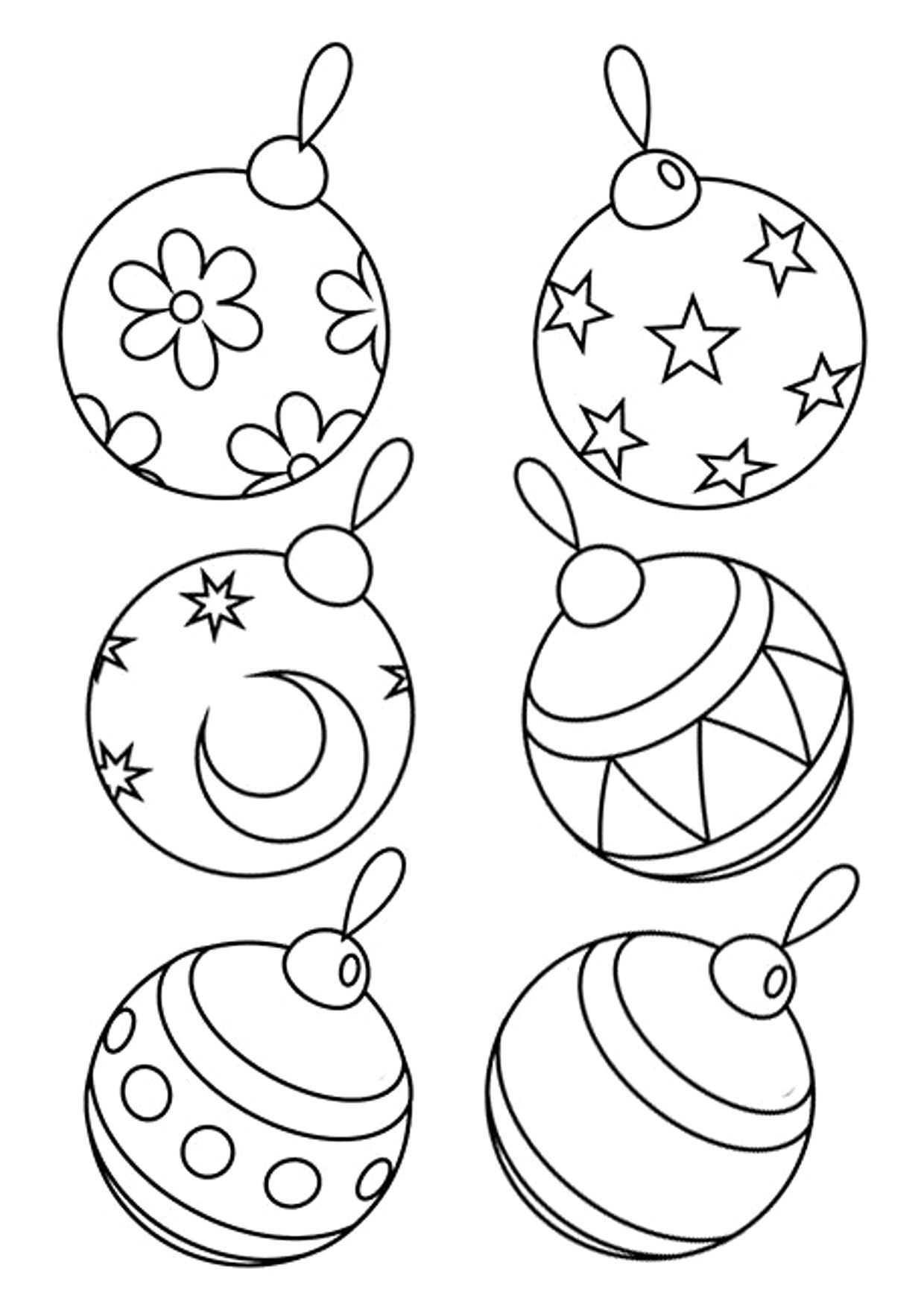 Разные новогодние шары и игрушки на листе А4 — 18 шаблонов