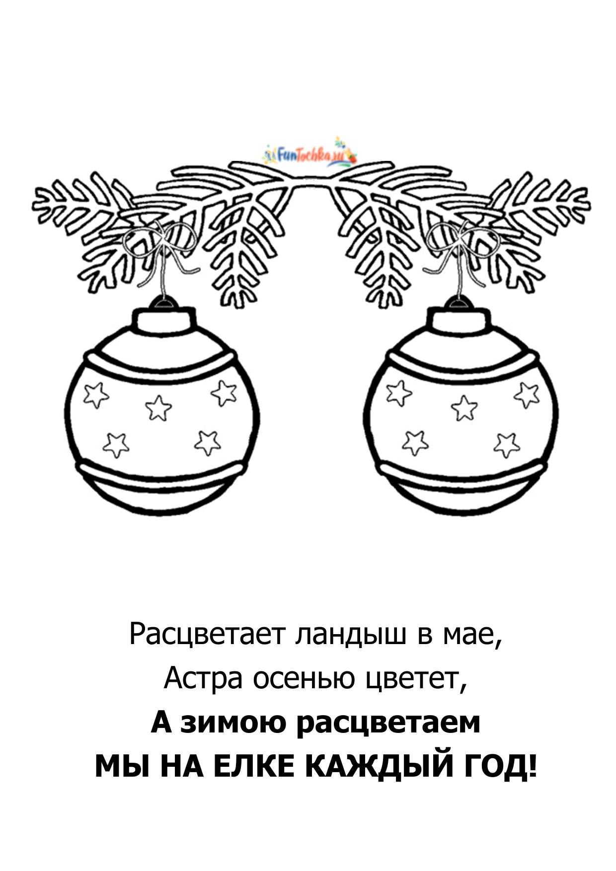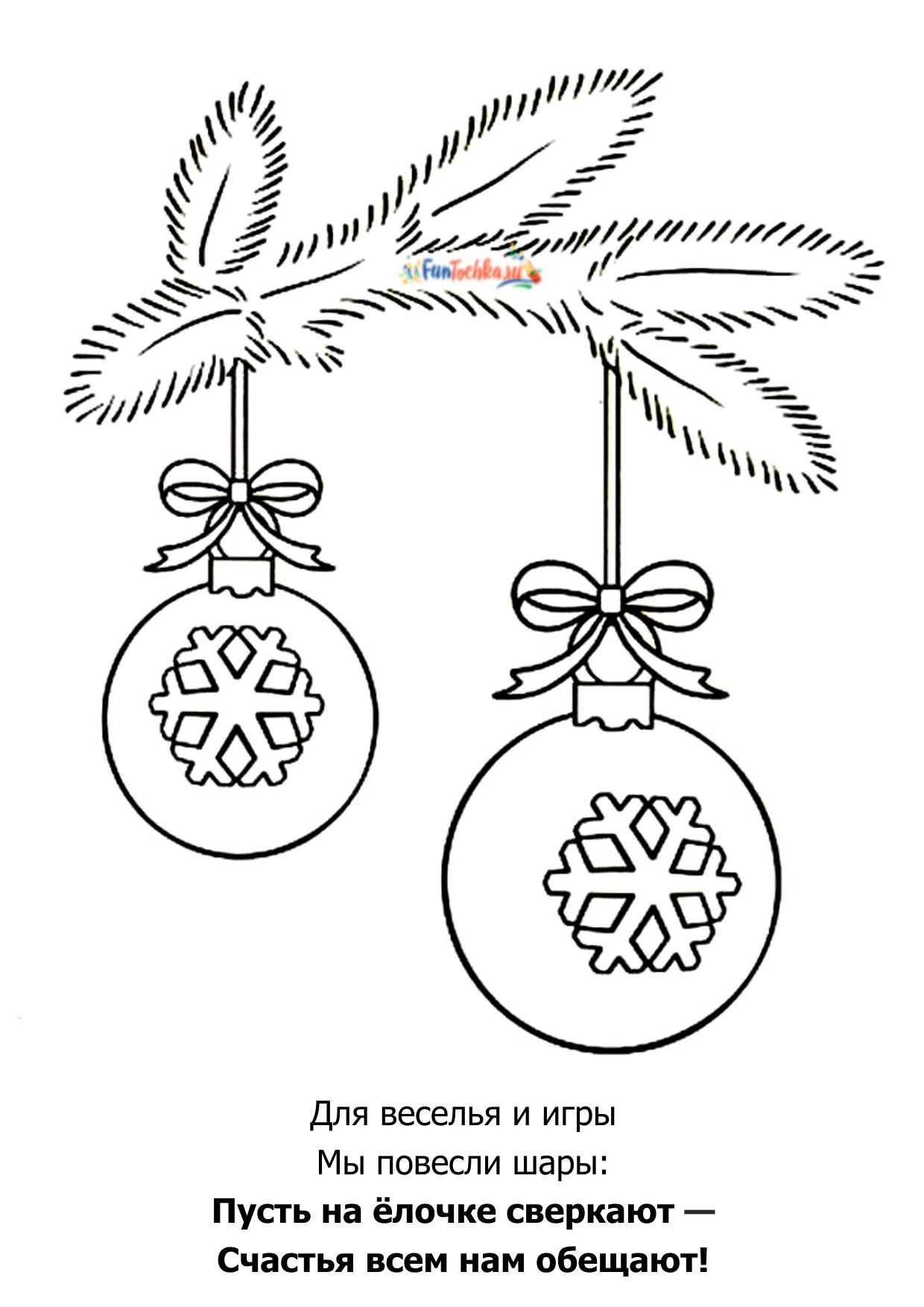 Для веселья и игры Мы повесили шары: Пусть на ёлочке сверкают — Счастье всем нам обещают!
