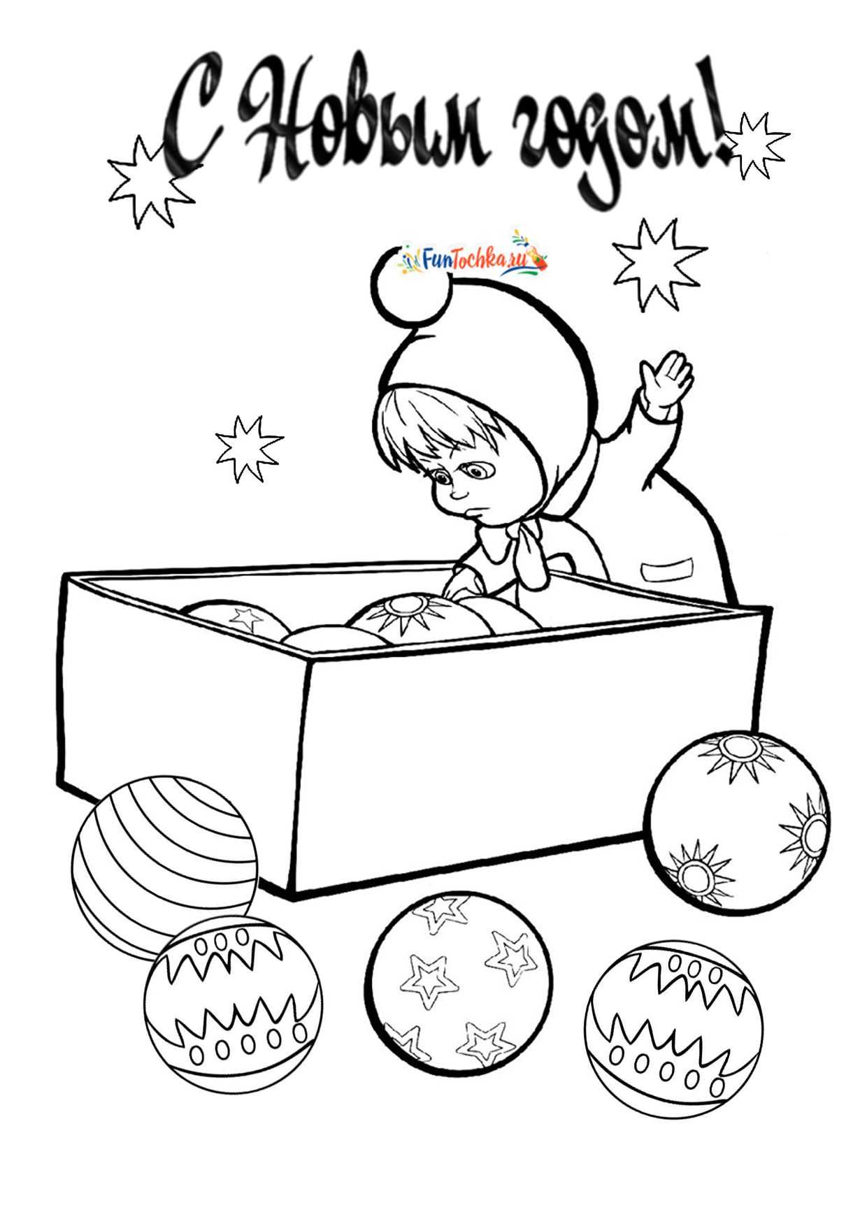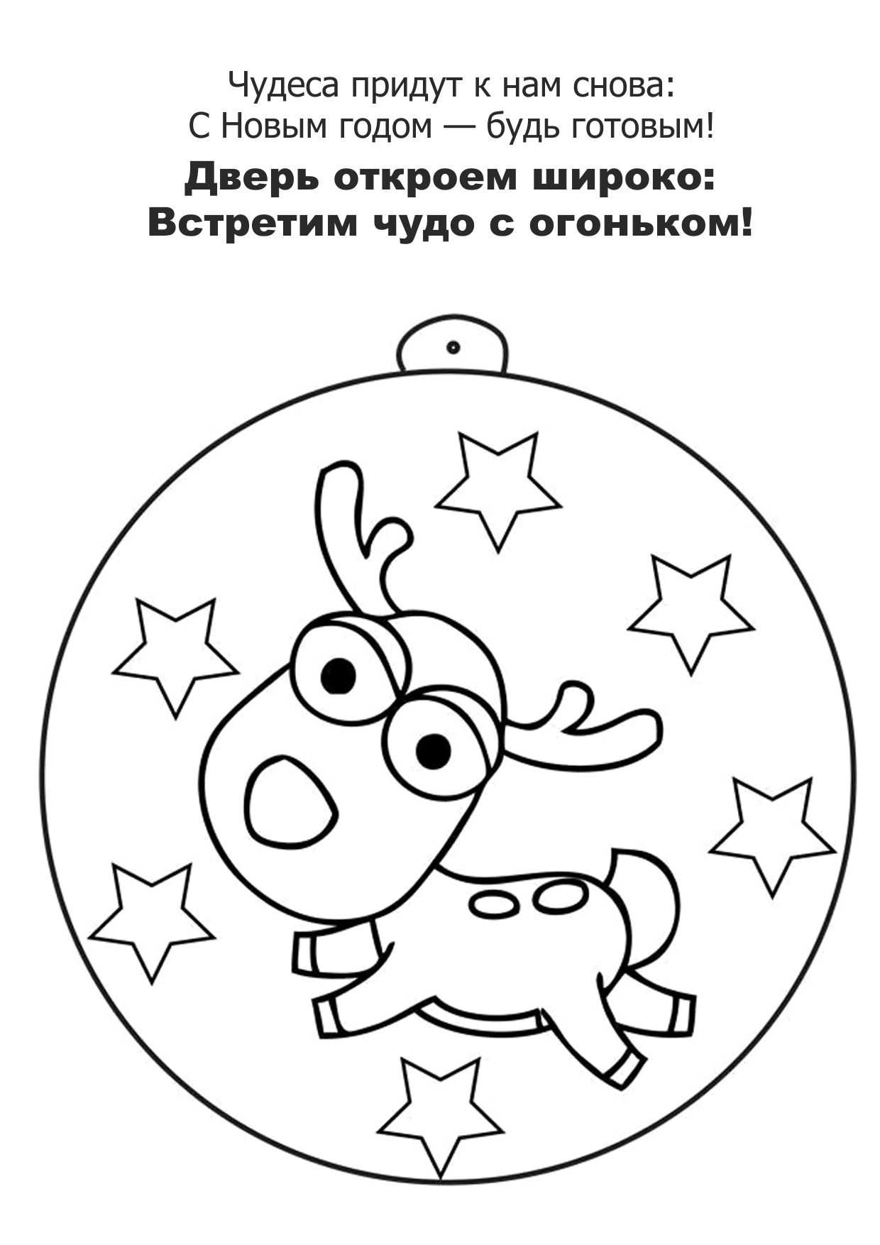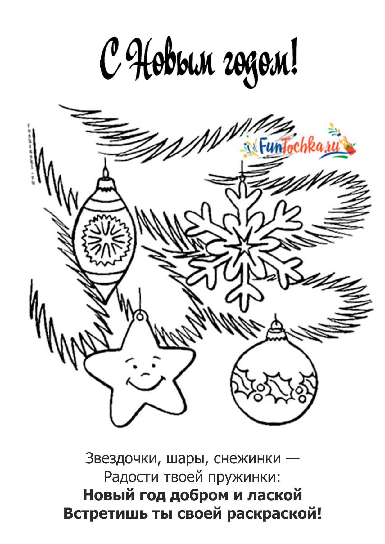 Звездочки, шары, снежинки — Радости твоей пружинки: Новый год добром и лаской Встретишь ты своей раскраской!