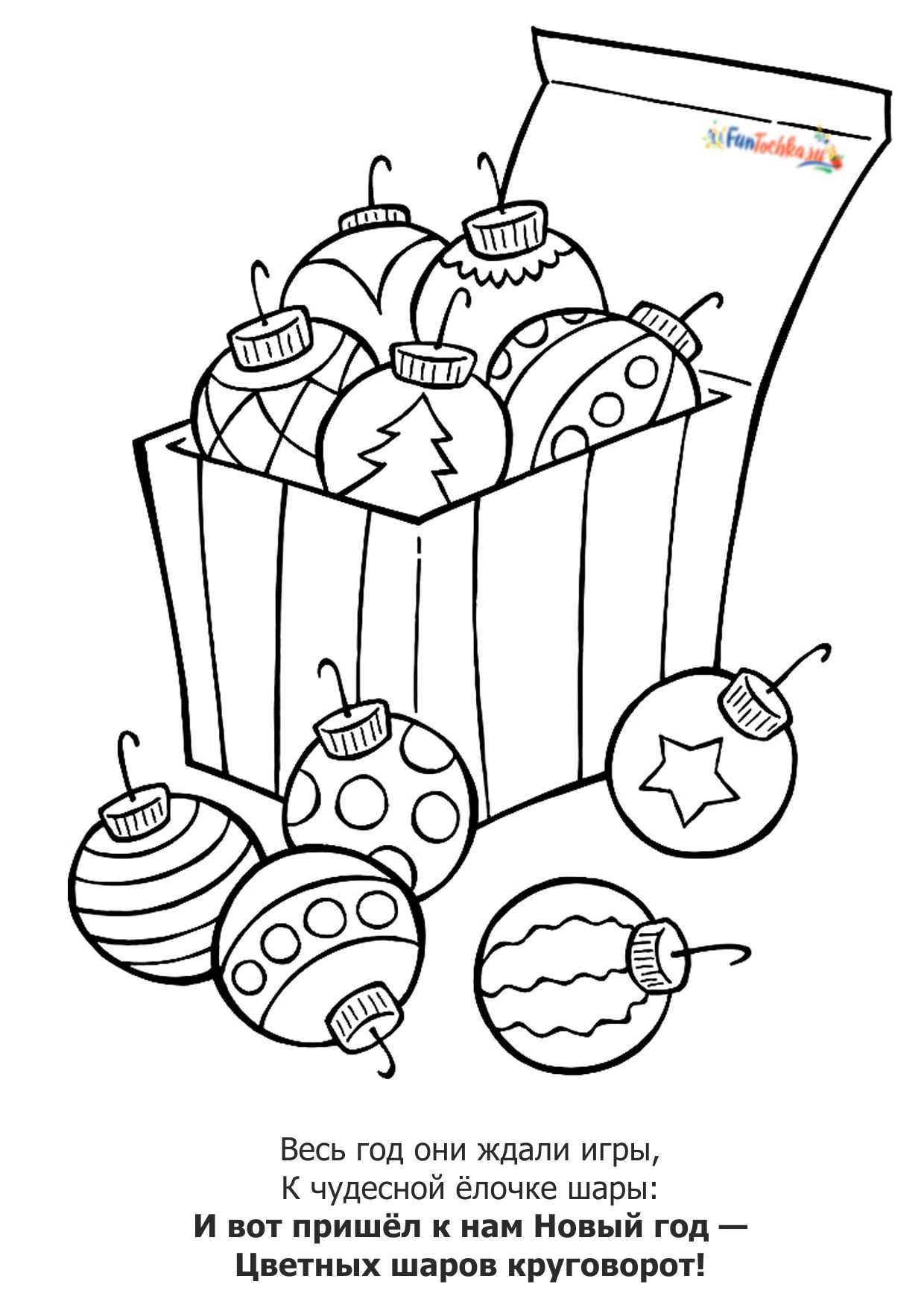 Весь год они ждали игры, Для ёлки красивой шары: И вот к нам пришёл Новый год — Цветных шаров круговорот!