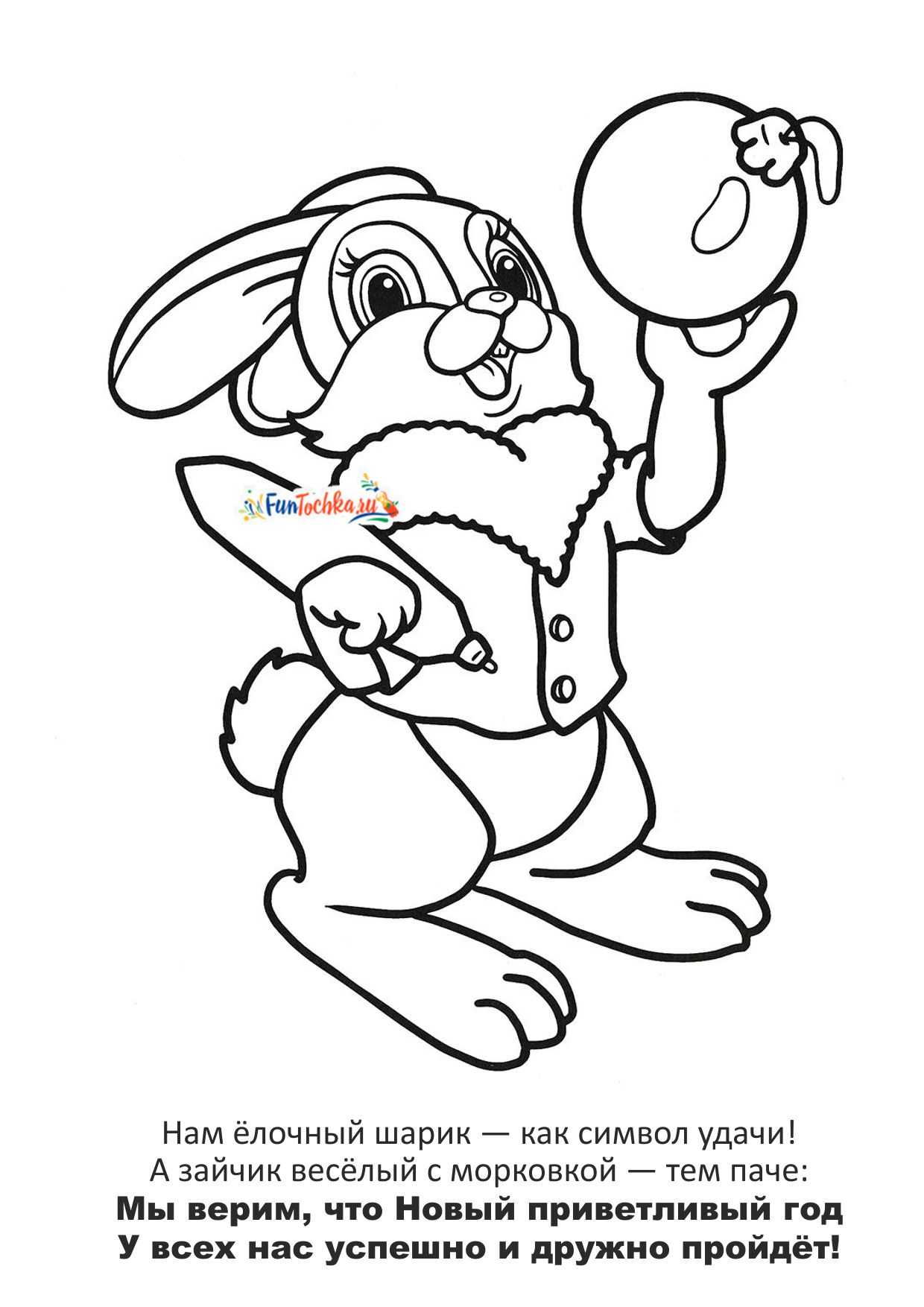 Мне ёлочный шарик — как символ удачи! А зайчик весёлый с морковкой — тем паче: Я верю, что Новый приветливый год У всех нас прекрасно и дружно пройдёт!