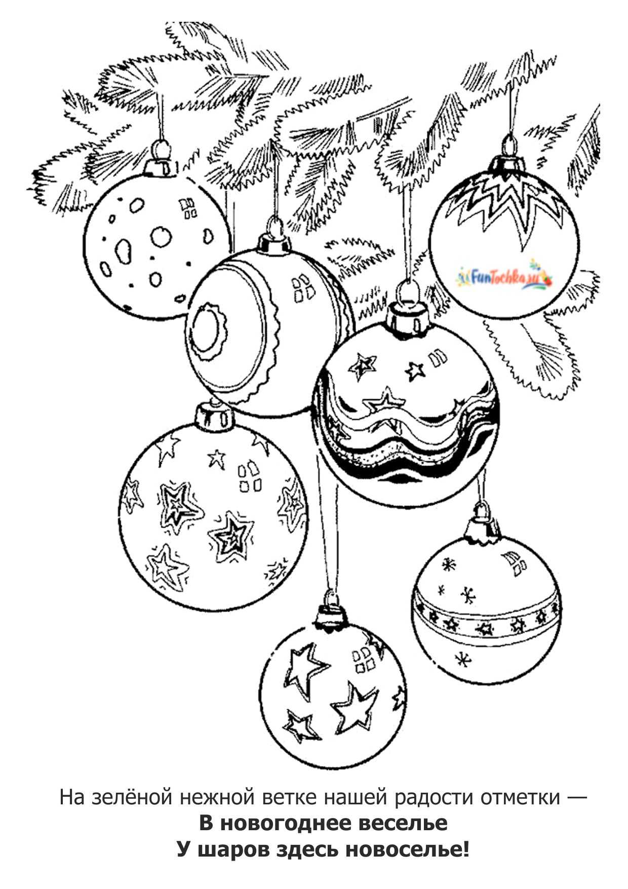 На зеленой нежной ветке Нашей радости отметки — В новогоднее веселье У шаров здесь новоселье!