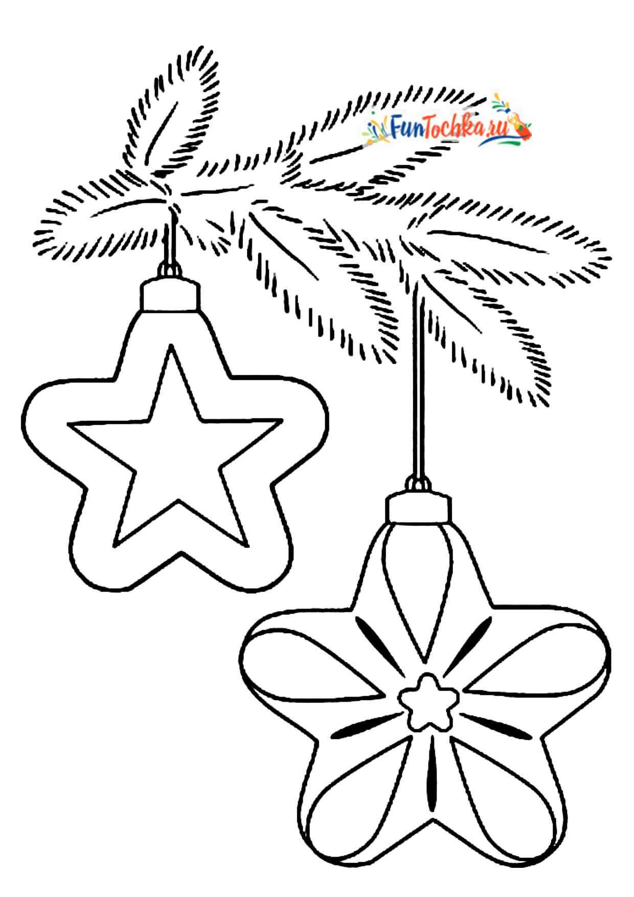 Ребенок переходит на новый уровень мастерства, когда может аккуратно обходится с мелкими элементами в контуре новогоднего шара. В наших бесплатных раскрасках самые волшебные и легко понятные для детей формы — это звезды всех мастей.