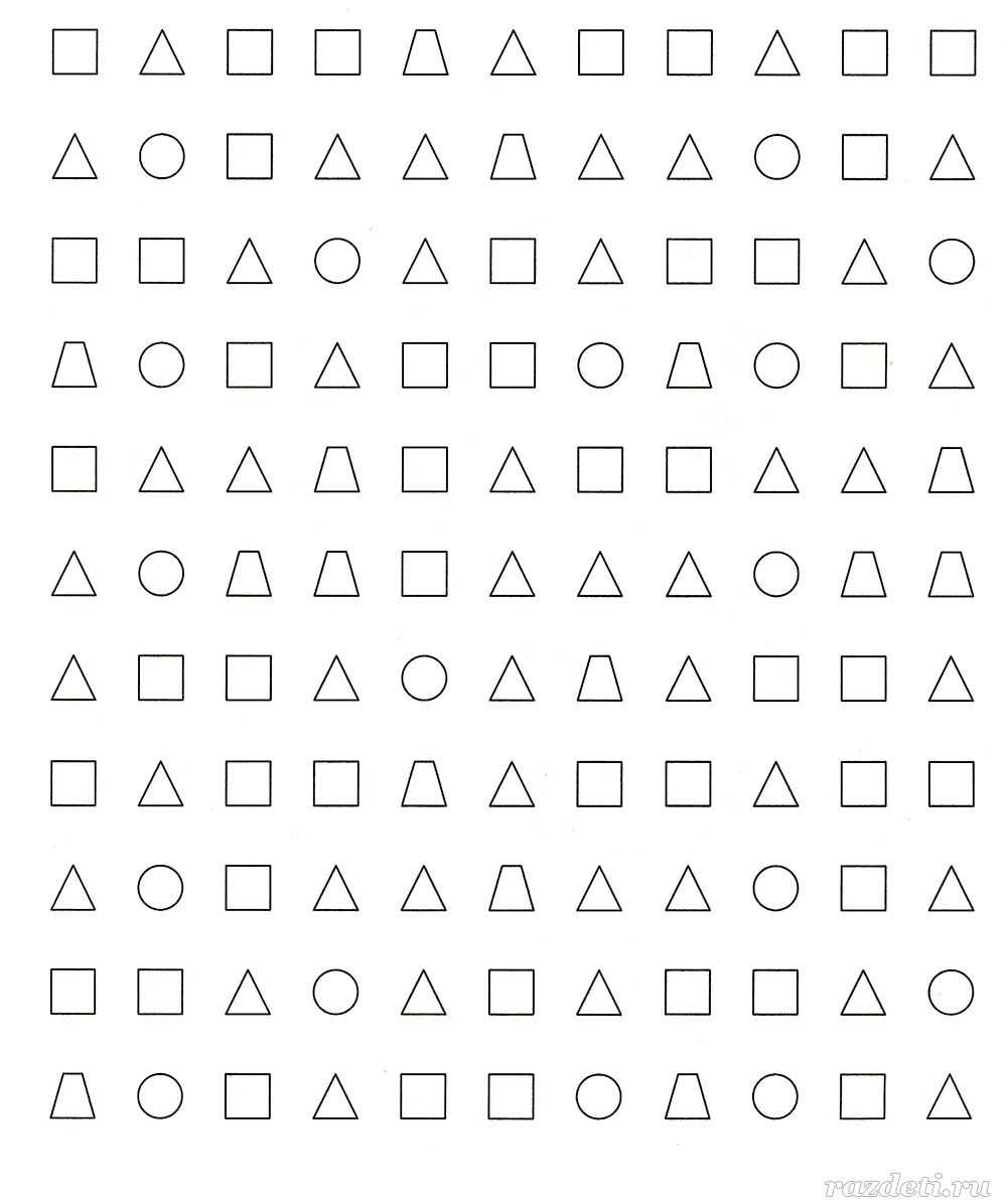 №2. Зачеркни все квадраты и обведи треугольники. Постарайся выполнить задание как можно быстрее.