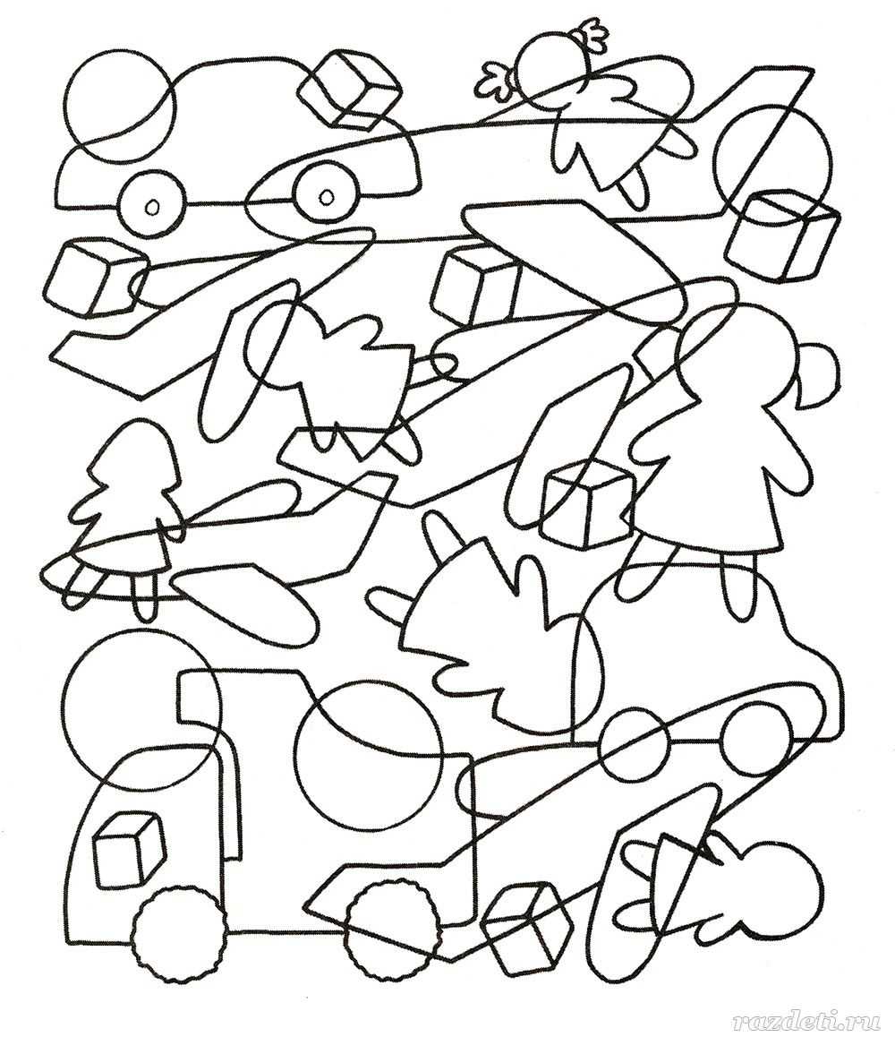 №27. На этом рисунке изображены контуры разных игрушек. Постарайся найти и сосчитать их потратив как можно меньше времени.
