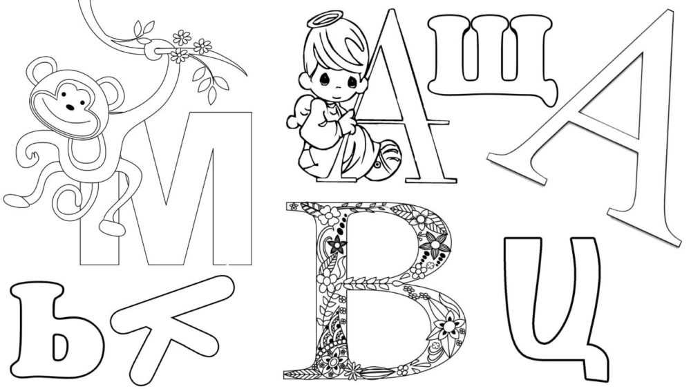 Знакомят с буквами, алфавитом. Сюда входят раскраски-прописи, русские и иностранные алфавиты.