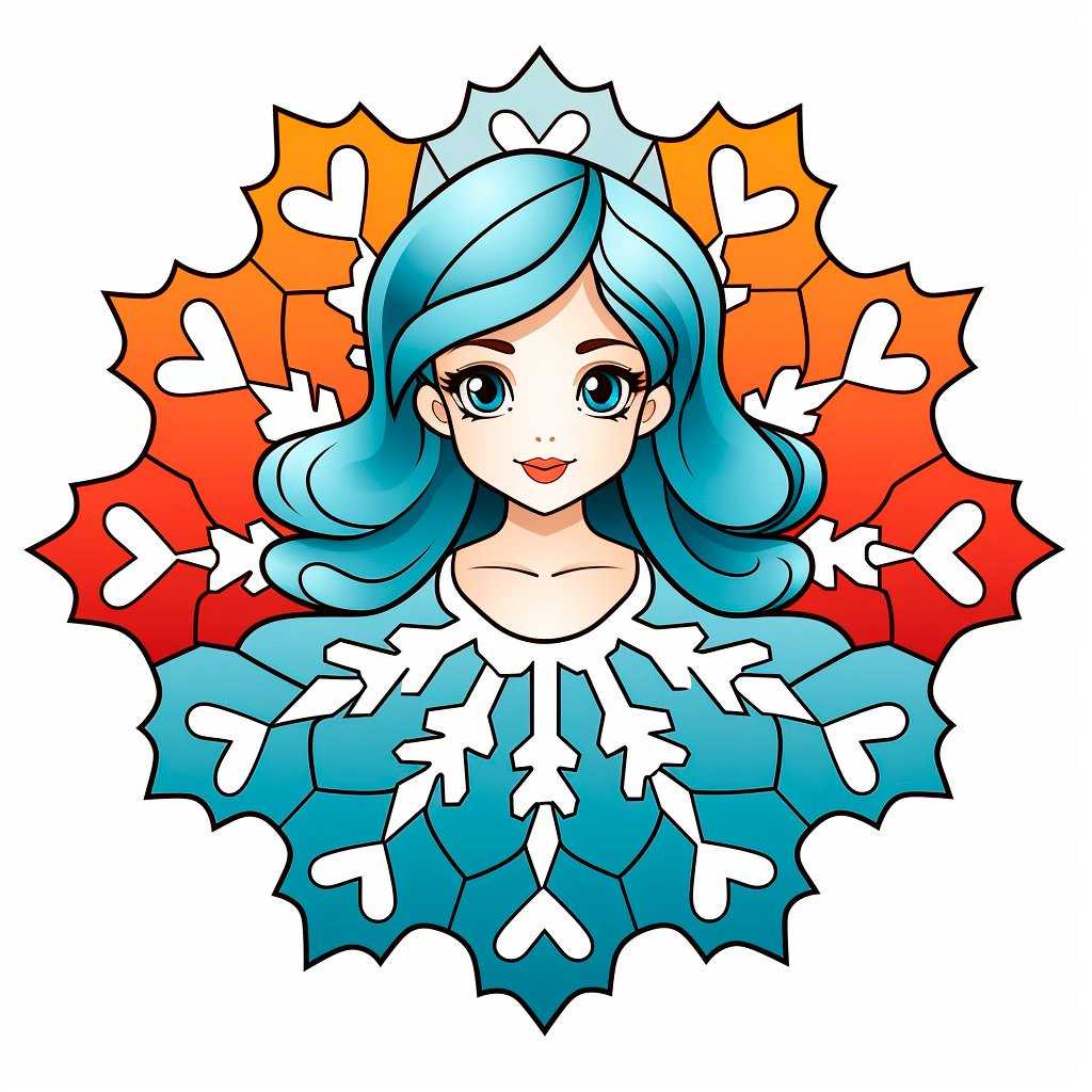 Еще один вариант раскраски на 2023 год – снежинка из кружков и овалов. Устройте детям урок рисования, научите их аккуратно наносить оттенки на рисунки. Несоблюдение границ – испортит незамысловатую форму снежного кристалла.