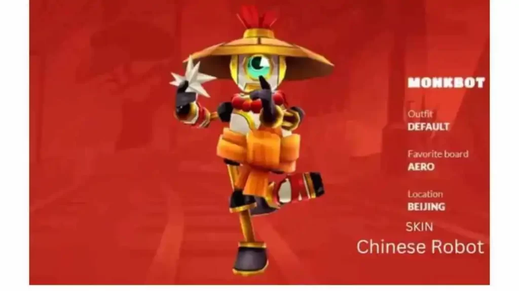 Monkbot is a character that first appeared in the Beijing Edition of the game and is now available to unlock for the cost of 2.99 Dollars, sporting a unique Chinese-themed outfit and a custom traditional hat.