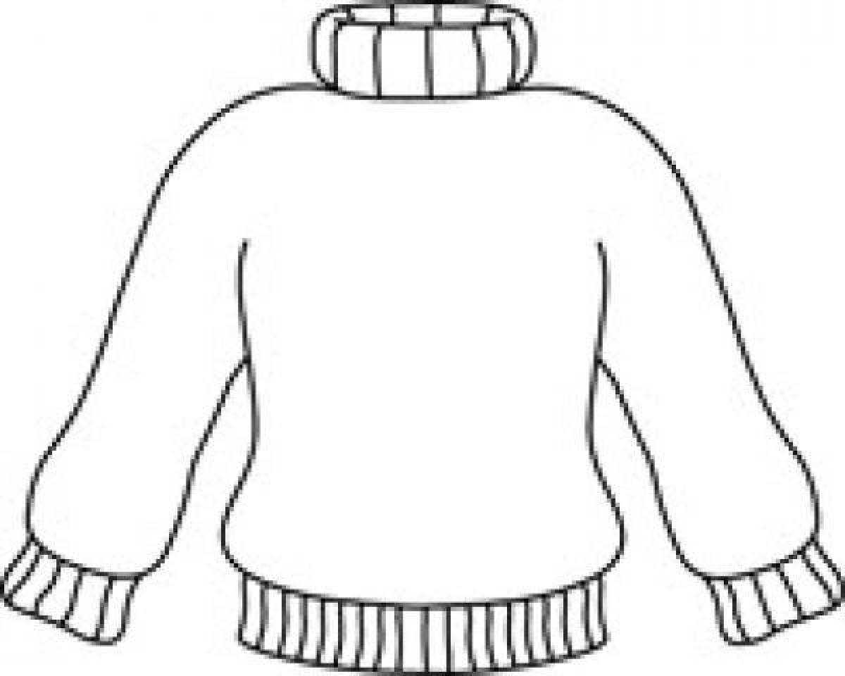 Выбирая конкретный вариант шаблона, педагог может предложить ребятам свитер с высоким воротником или без него (с круглой или треугольной горловиной). Рукава, в свою очередь, могут быть широкими или же с обозначенной резинкой внизу.