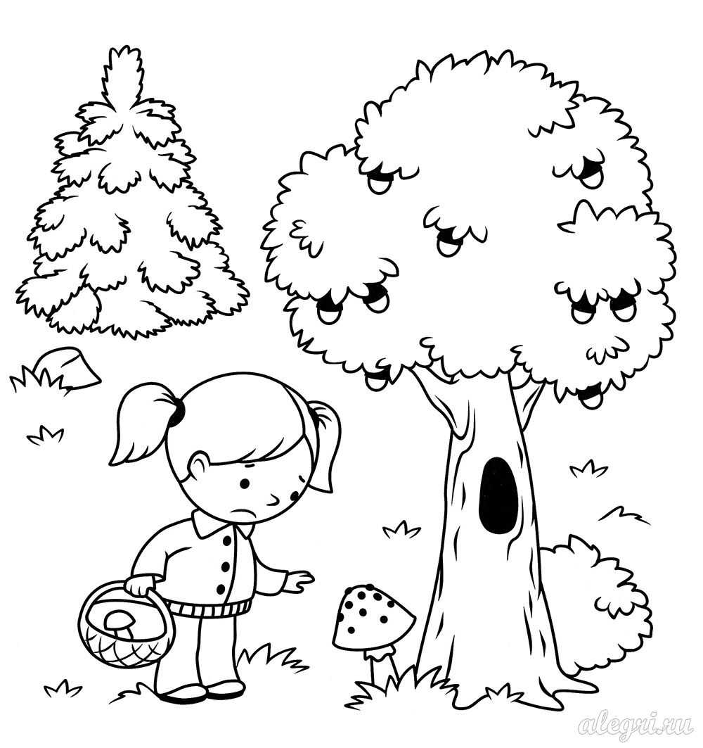Какой гриб увидела девочка? Нарисуй в лесу побольше съедобных грибов.