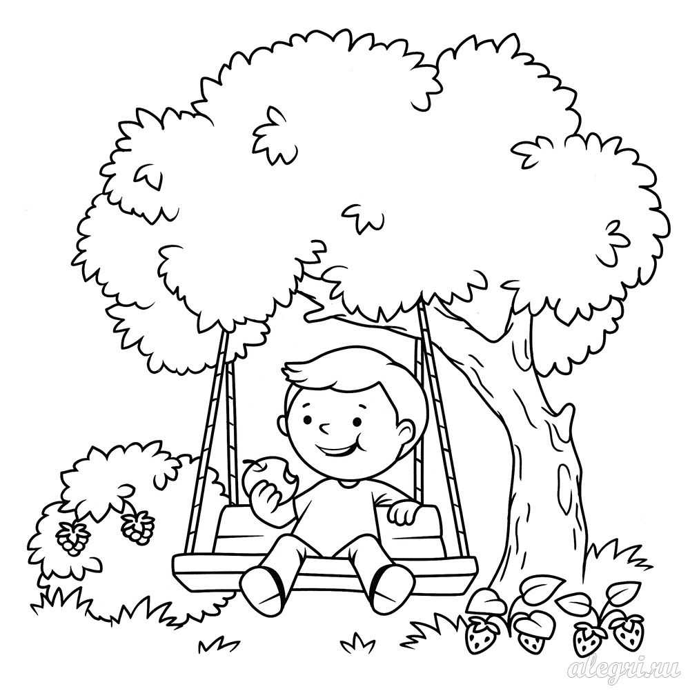 Дорисуй на яблоне румяные яблоки. Какие ещё фрукты и ягоды растут на даче?