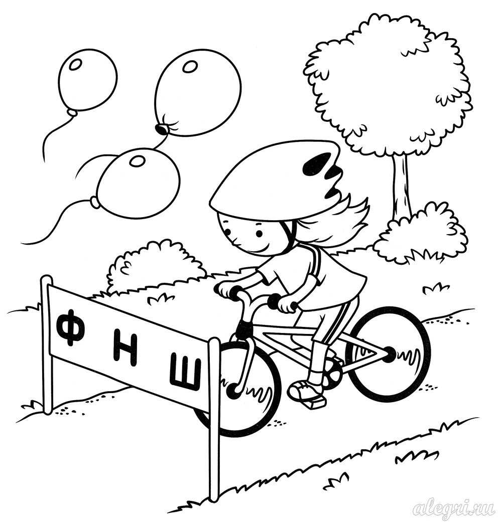 Девочка победила в велосипедной гонке! Какая надпись оповещает о конце дистанции? Впиши недостающие буквы.