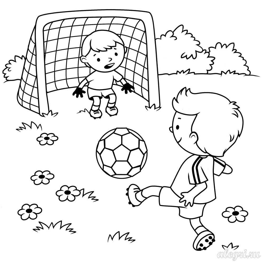 Раскрась мяч так, чтобы он стал футбольным. Куда нужно забивать мяч, когда играешь в футбол?