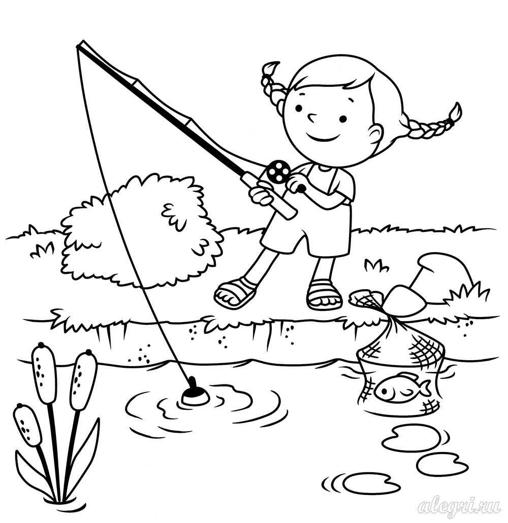 Чем девочка ловит рыбу? Сколько рыб она уже поймала?