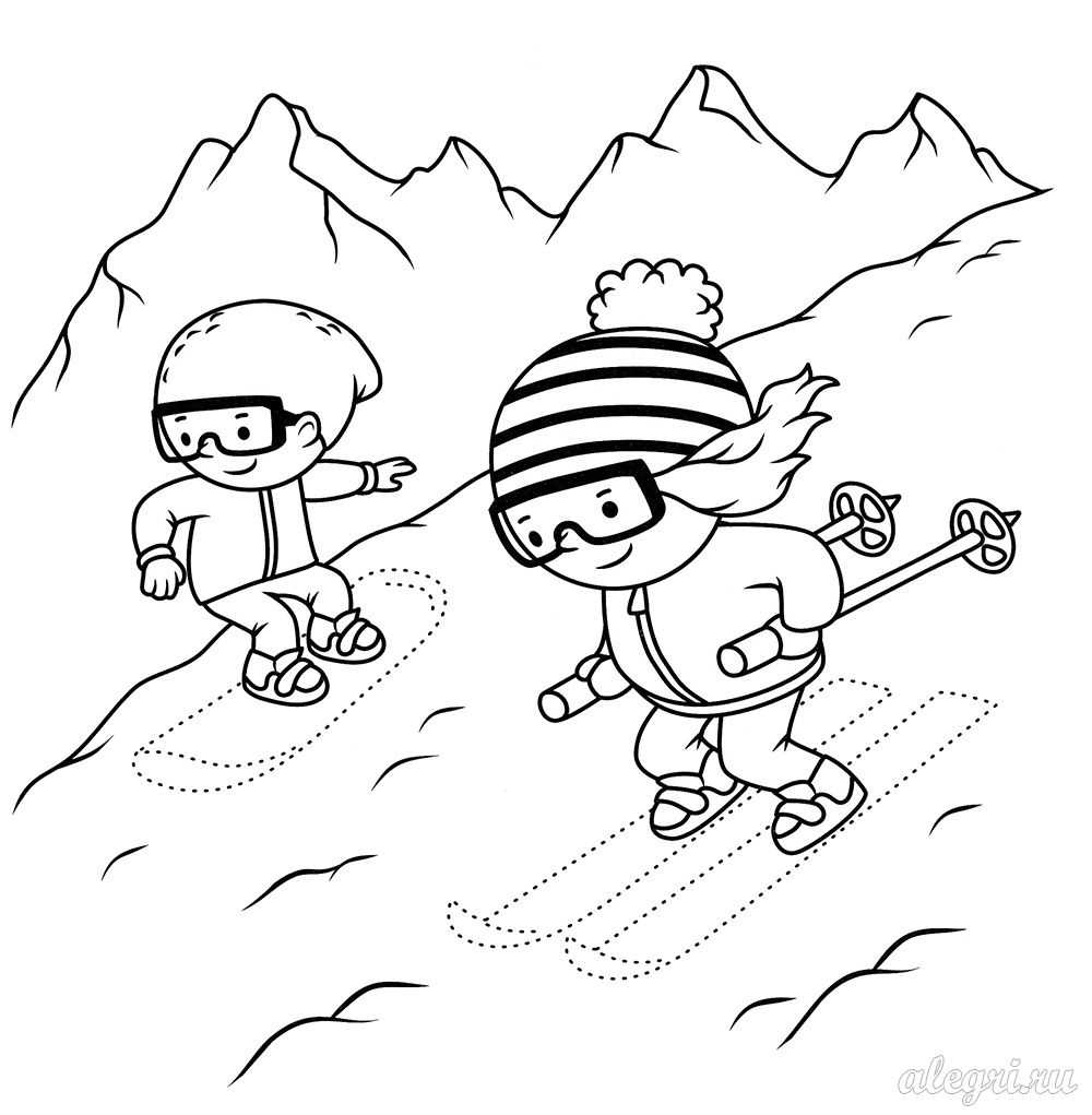 Обведи предметы по точкам. На чём катаются дети? На чём ещё можно кататься зимой?