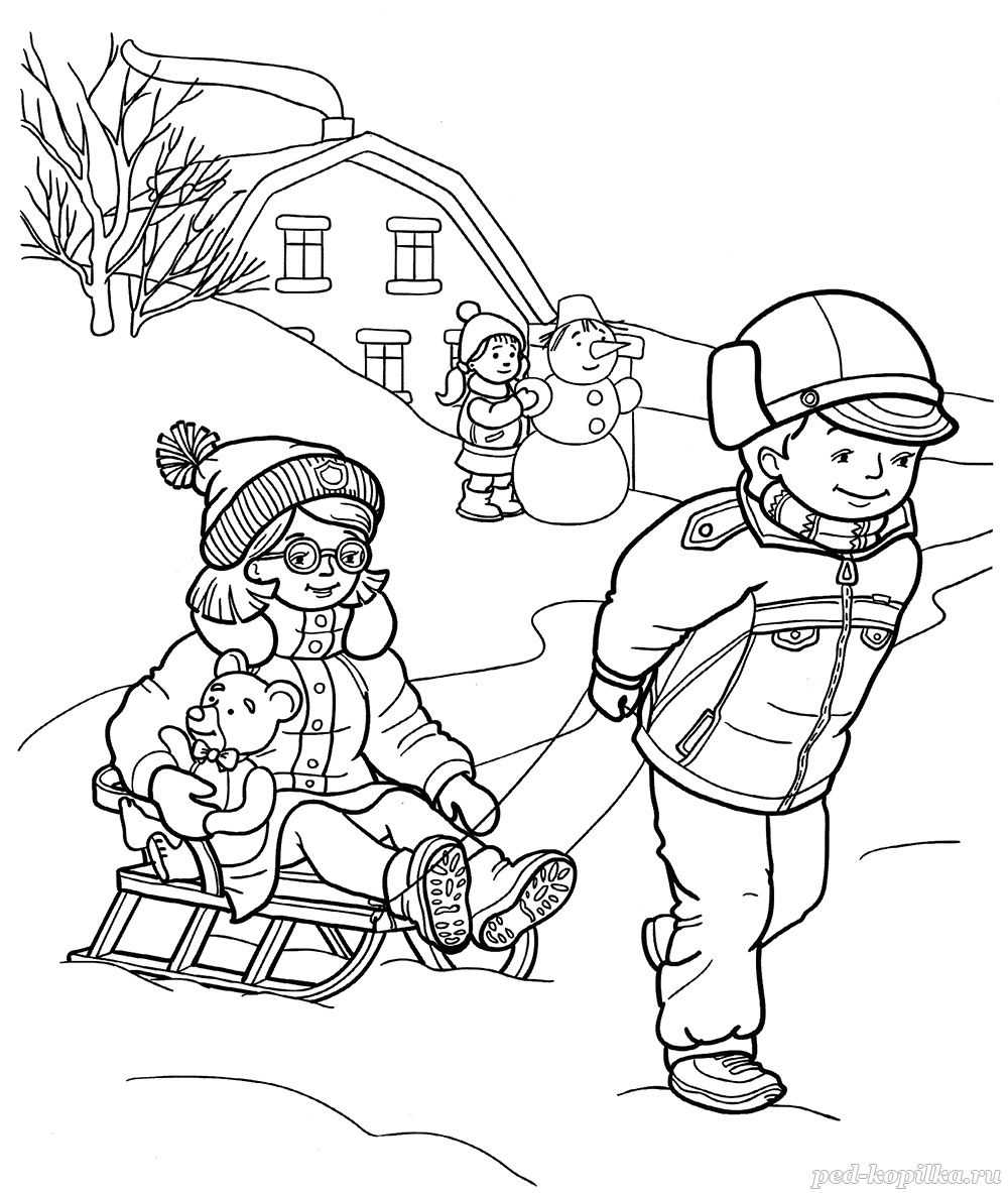 Зимние забавы – раскраска для детей