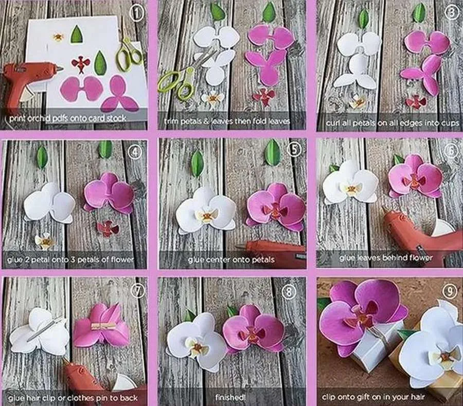 Скачайте трафареты и сделайте красивую орхидею из бумаги своими руками. Такие замечательные цветы можно использовать для украшения подарка или сделать букетик и поставить в вазу.