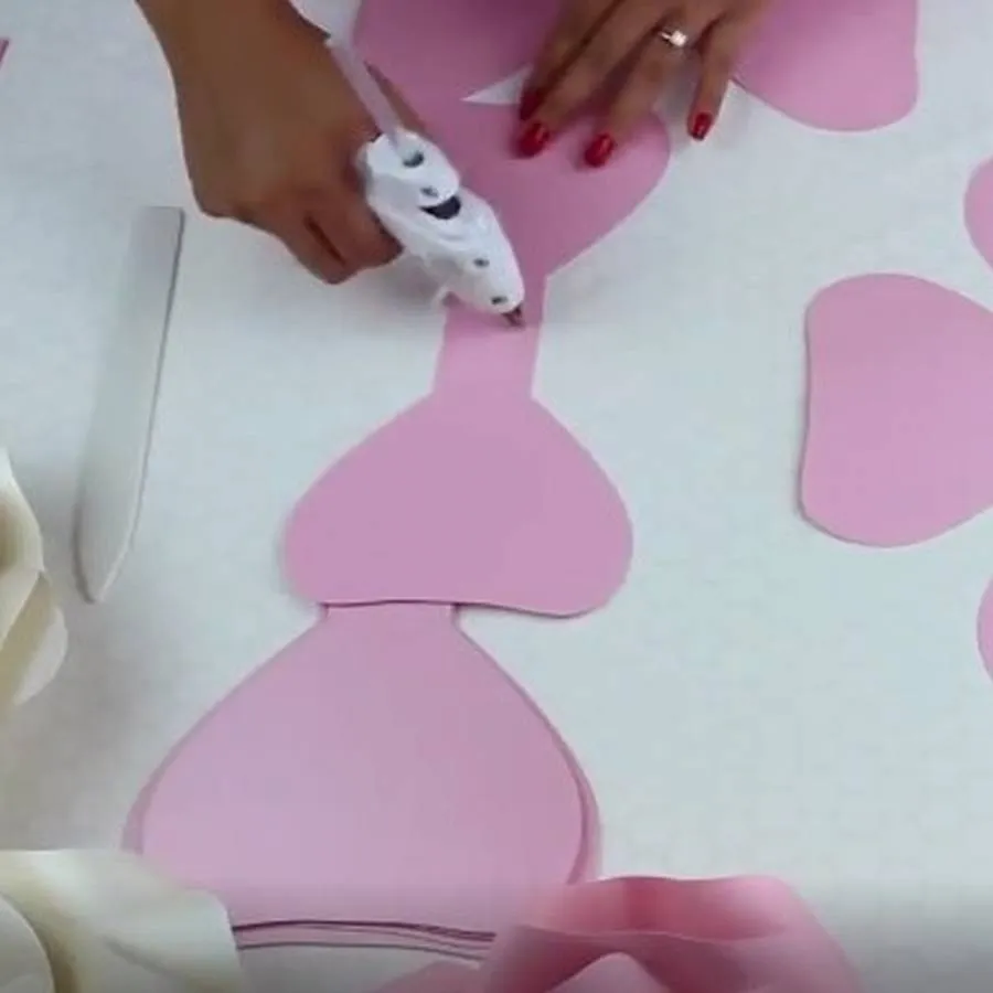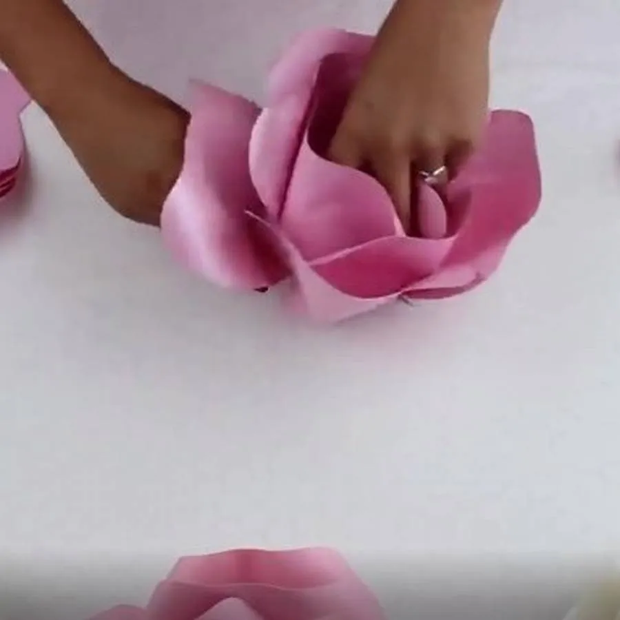 Найдите трафареты, из которых можно вырезать лепестки для этой большой розы на стену из бумаги. Посмотрите пошаговые фото, как собрать цветок и изготовить центральную часть.