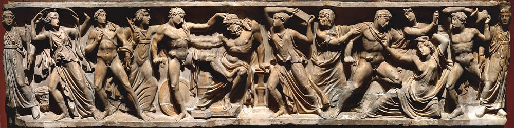 «Орест убивает Эгиста и Клитемнестру». Рельеф, ок.150 года н.э.Местонахождение: Государственный Эрмитаж, Санкт-Петербург, Россия