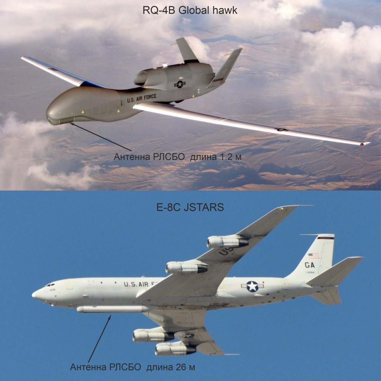 К чему столь пристальное сопоставление характеристик двух натовских воздушных шпионов? К тому, что Пентагон всех удивил, решив избавиться от легендарного самолёта-разведчика — 15 ноября прошла церемония прощания с последним Boeing E-8C JSTARS. Официально их больше нет на вооружении. Нет и полноценной замены. Хотя этот самолёт, кроме разведки, мог ещё управлять с небес войсками. Американцы заявили: дескать, теперь вместо них будут использовать спутники, другие самолёты, наземные радары и т.п. Но ведь это всё равно, что заменить карьерный самосвал сотнями тележек из супермаркета.