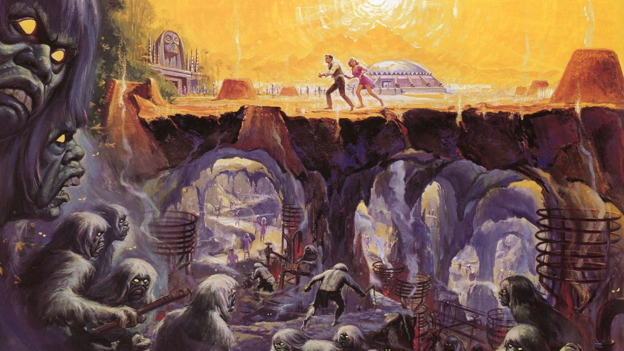 Морлоки за многие тысячелетия обслуживания механизмов, которые дают возможность существовать элоям на поверхности земли без забот, деградировали. Элои тоже деградировали. Но у морлоков к тому же больше нет возможности производить пищу под землей. Поэтому они под покровом темноты крадут элоев, чтоб потом… съесть их!