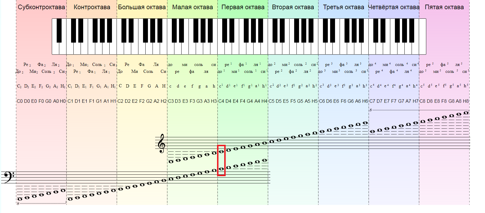 Желательно, чтобы ноты были цветными, по цветам радуги: так они лучше запоминаются.