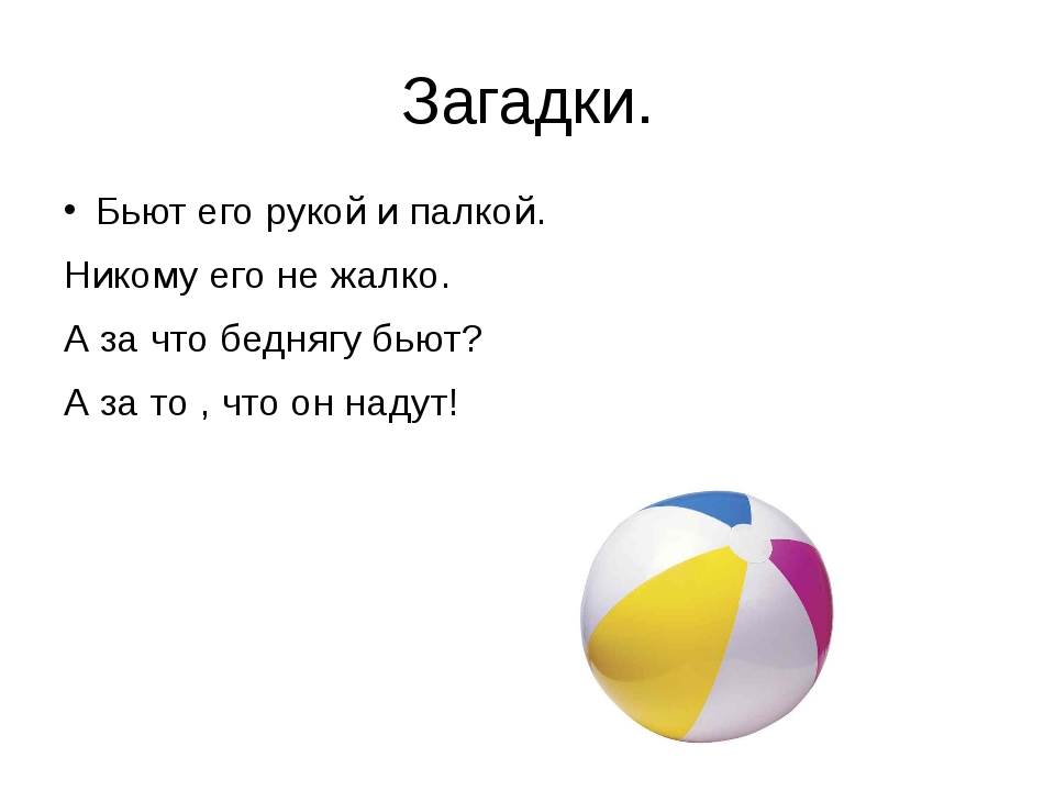 Здесь вы можете найти несколько полезных для вас примеров. Загадка про мячик для детей самого маленького возраста – это отличный старт, поэтому именно их мы в качестве примеров приведем ниже.