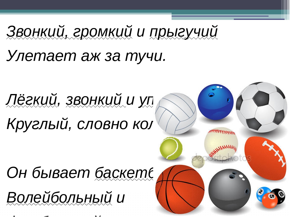 Как только ребенок начинает активно изучать мир и понимать речь взрослых, его можно знакомить с резиновыми или надувными мячиками. Позже, когда дети начинают играть в спортивные игры с мячами, они узнают об их разнообразии и знакомятся с особенностями. Например, инвентарь для тенниса — маленького размера, может быть яркого цвета и имеет текстильную поверхность. Загадки про мяч могут быть: