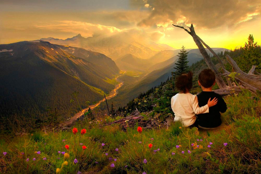 | Раскрасило солнце на небе дугу. Расцветки искало оно на лугу. |